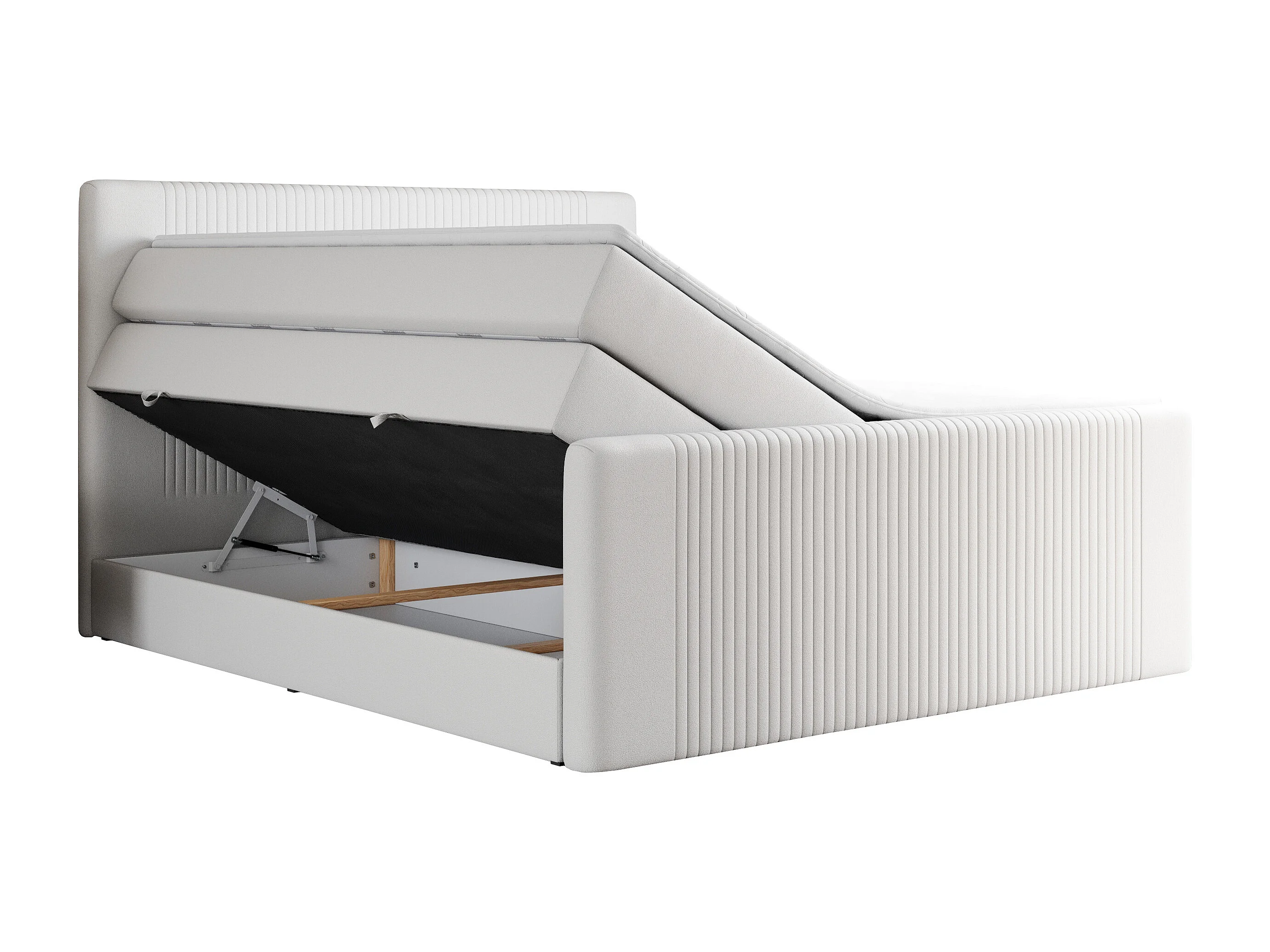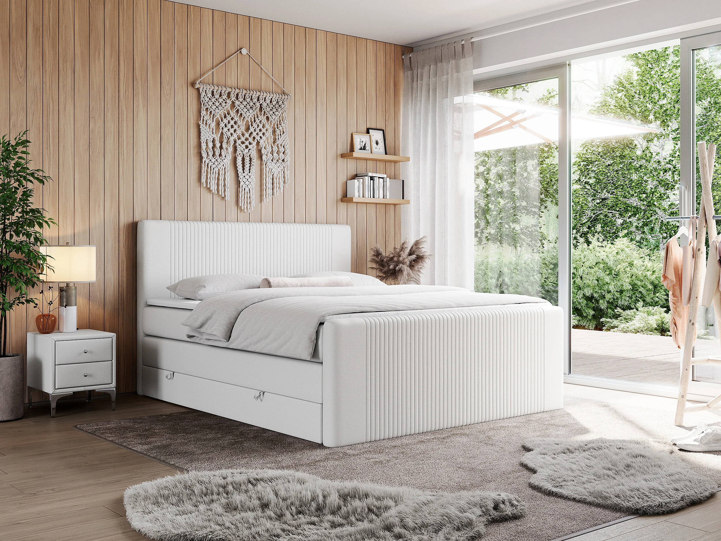 Boxspringbett DOREN KING - mit gesteppter Front und Kopfteil, zwei Multipocket-Matratzen und Topper, Doppelbett - 120x200 cm - H3 - Weiß Kunstleder