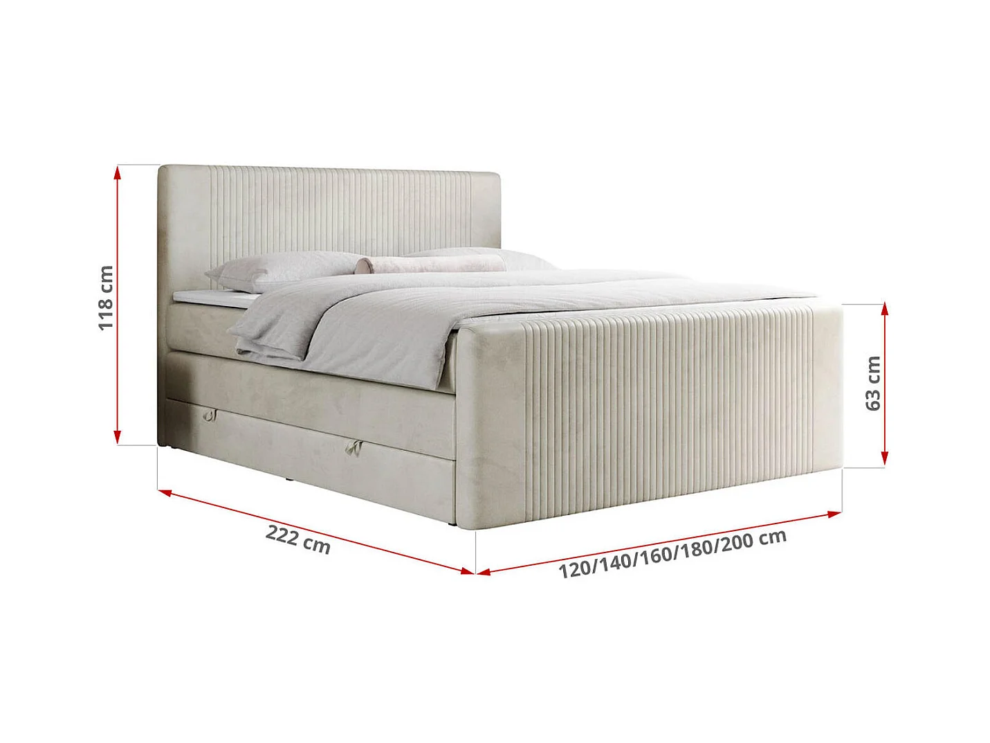 Boxspringbett DOREN KING - mit gesteppter Front und Kopfteil, zwei Multipocket-Matratzen und Topper, Doppelbett - 140x200 cm - H3 - Beige Velvet