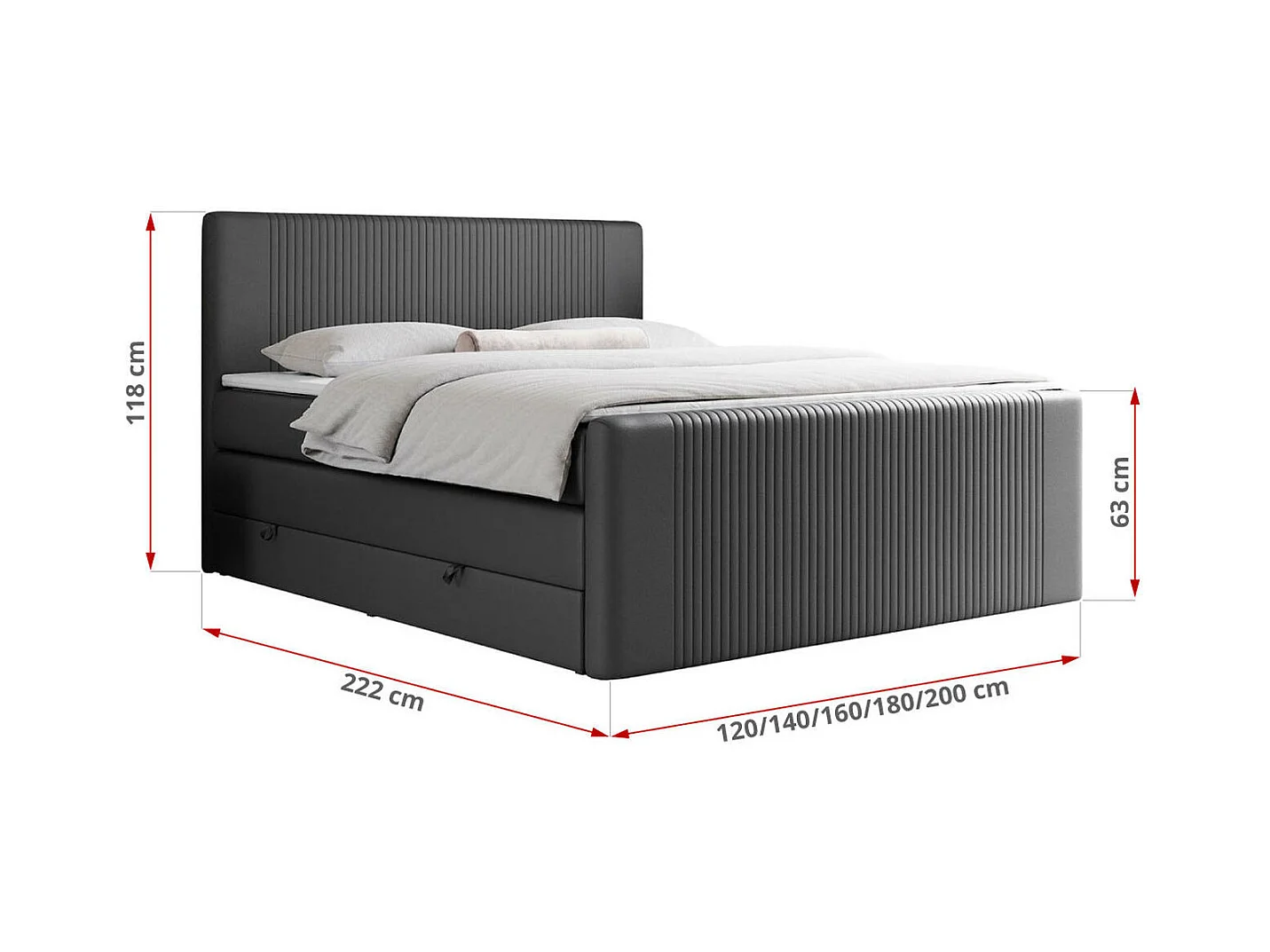Boxspringbett DOREN KING - mit gesteppter Front und Kopfteil, zwei Multipocket-Matratzen und Topper, Doppelbett - 140x200 cm - H4 - Dunkelgrau Kunstleder