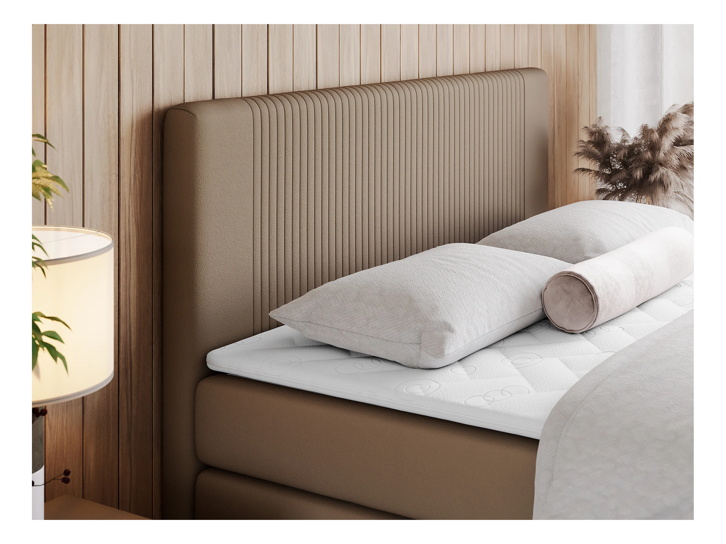Boxspringbett DOREN KING - mit gesteppter Front und Kopfteil, zwei Multipocket-Matratzen und Topper, Doppelbett - 160x200 cm - H4 - Braun Kunstleder