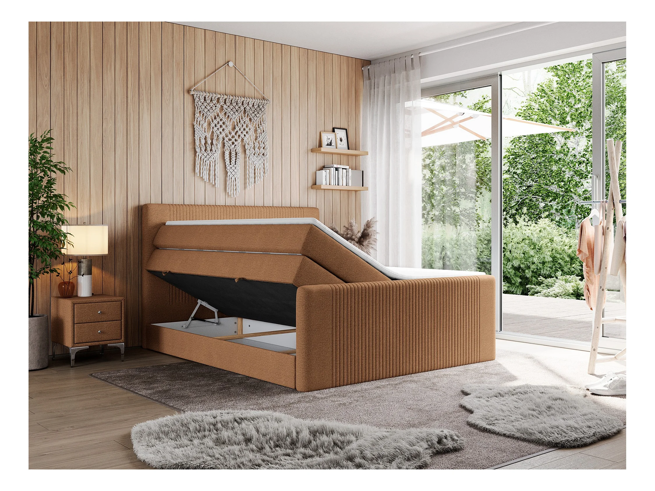 Boxspringbett DOREN KING - mit gesteppter Front und Kopfteil, zwei Multipocket-Matratzen und Topper, Doppelbett - 160x200 cm - H4 - Orange Strukture