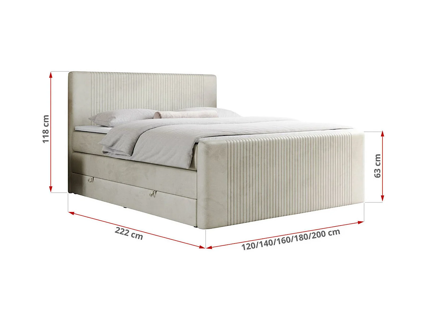 Boxspringbett DOREN KING - mit gesteppter Front und Kopfteil, zwei Multipocket-Matratzen und Topper, Doppelbett - 180x200 cm - H4 - Beige Velvet