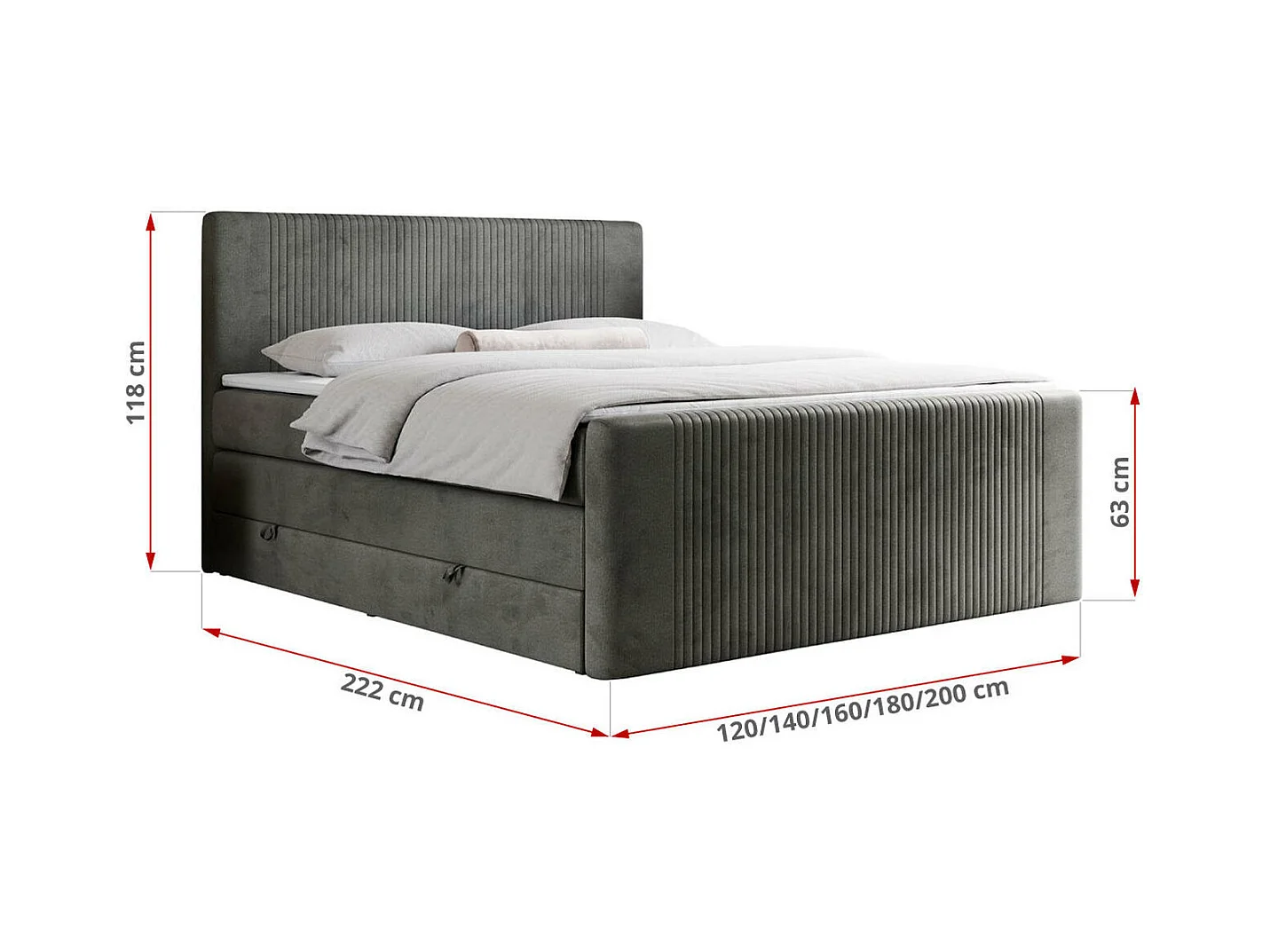 Boxspringbett DOREN KING - mit gesteppter Front und Kopfteil, zwei Multipocket-Matratzen und Topper, Doppelbett - 200x200 cm - H3 - Dunkelgrau Velvet