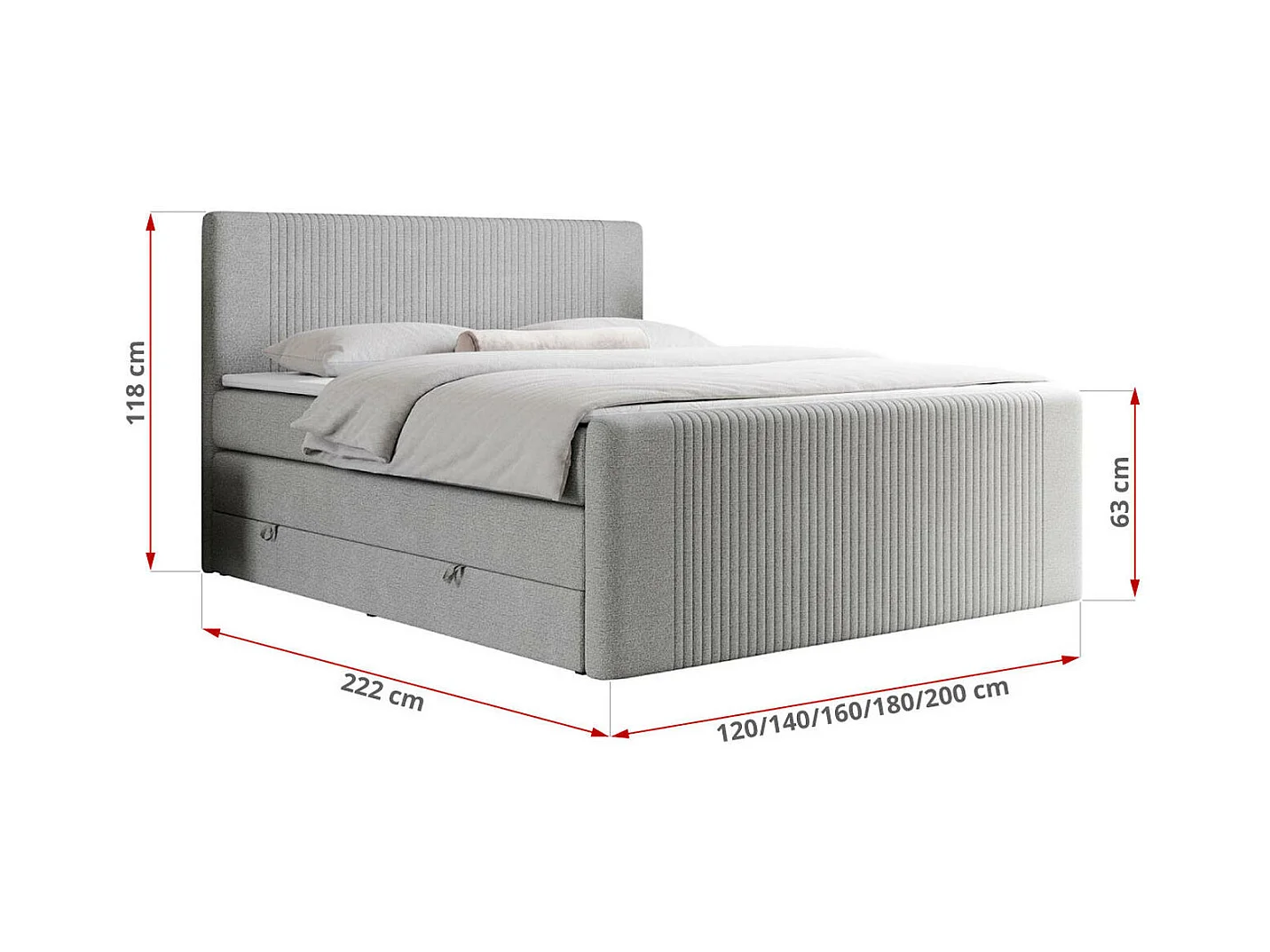 Boxspringbett DOREN KING - mit gesteppter Front und Kopfteil, zwei Multipocket-Matratzen und Topper, Doppelbett - 200x200 cm - H3 - Hellgrau Strukture