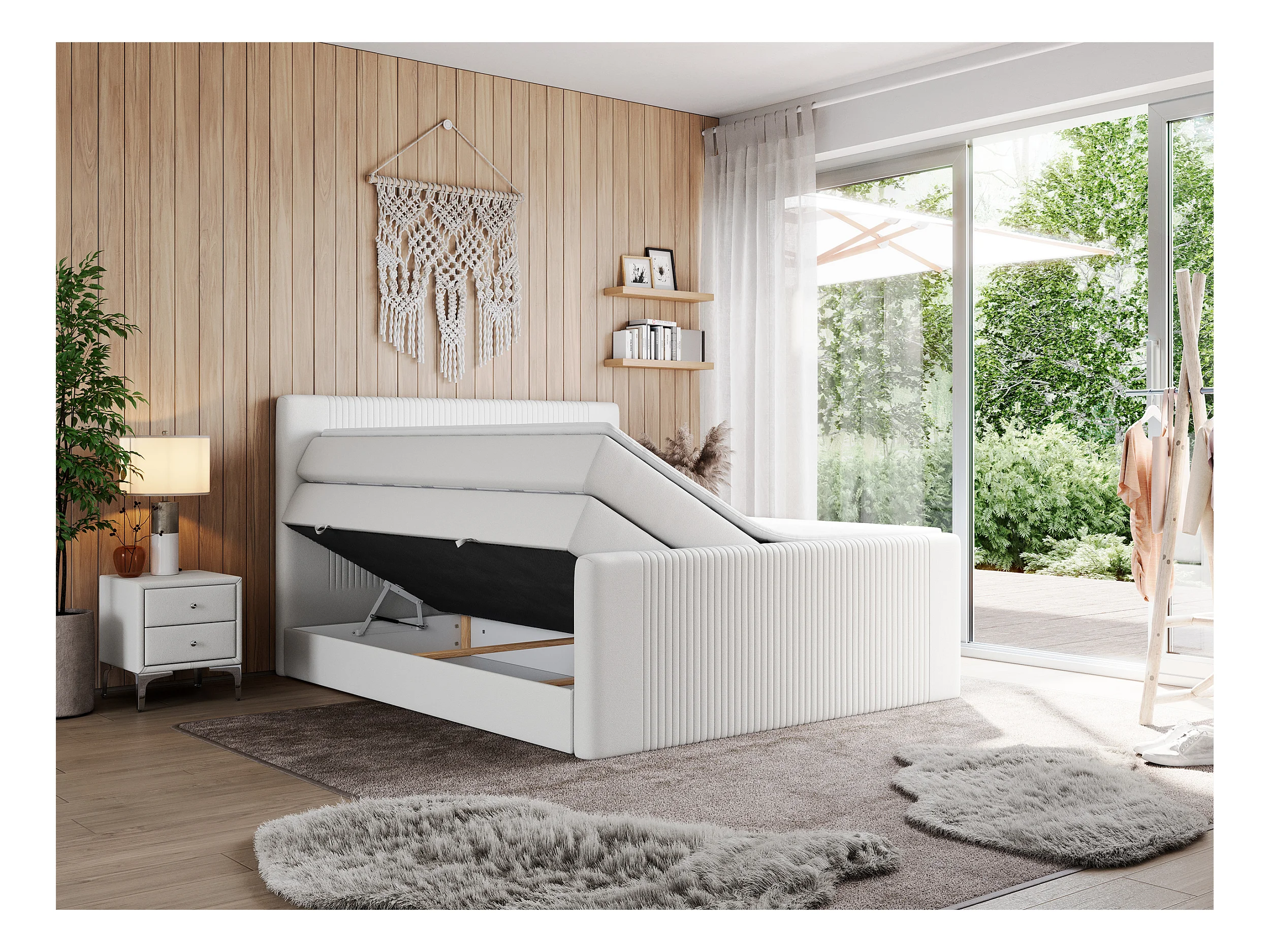 Boxspringbett DOREN KING - mit gesteppter Front und Kopfteil, zwei Multipocket-Matratzen und Topper, Doppelbett - 200x200 cm - H4 - Weiß Kunstleder