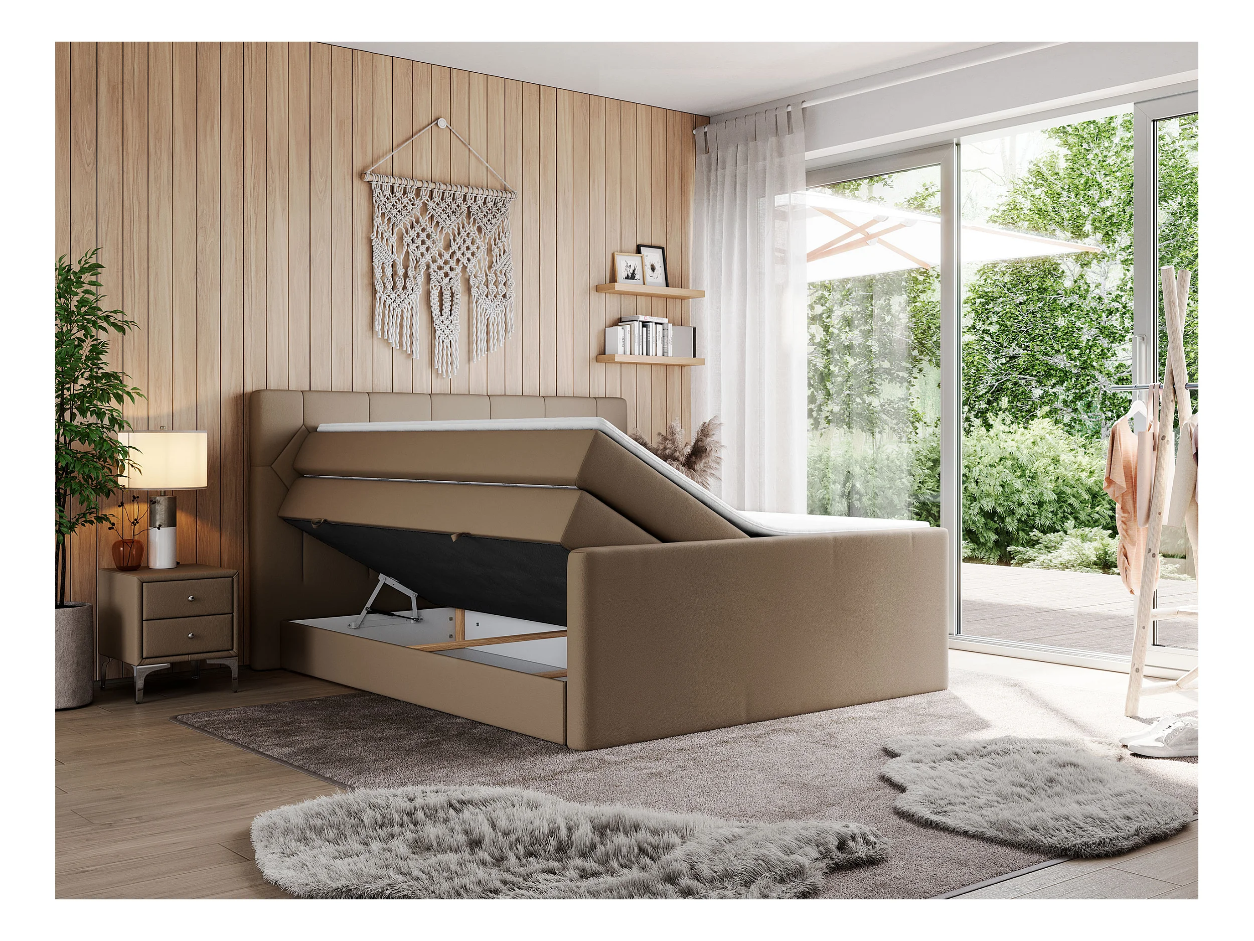 Boxspringbett EIGAR KING - Doppelbett mit genähtem Kopfteil, zwei Multipocket-Matratzen, Polsterbett für Schlafzimmer - 120x200 cm - H4 - Braun Kunstleder