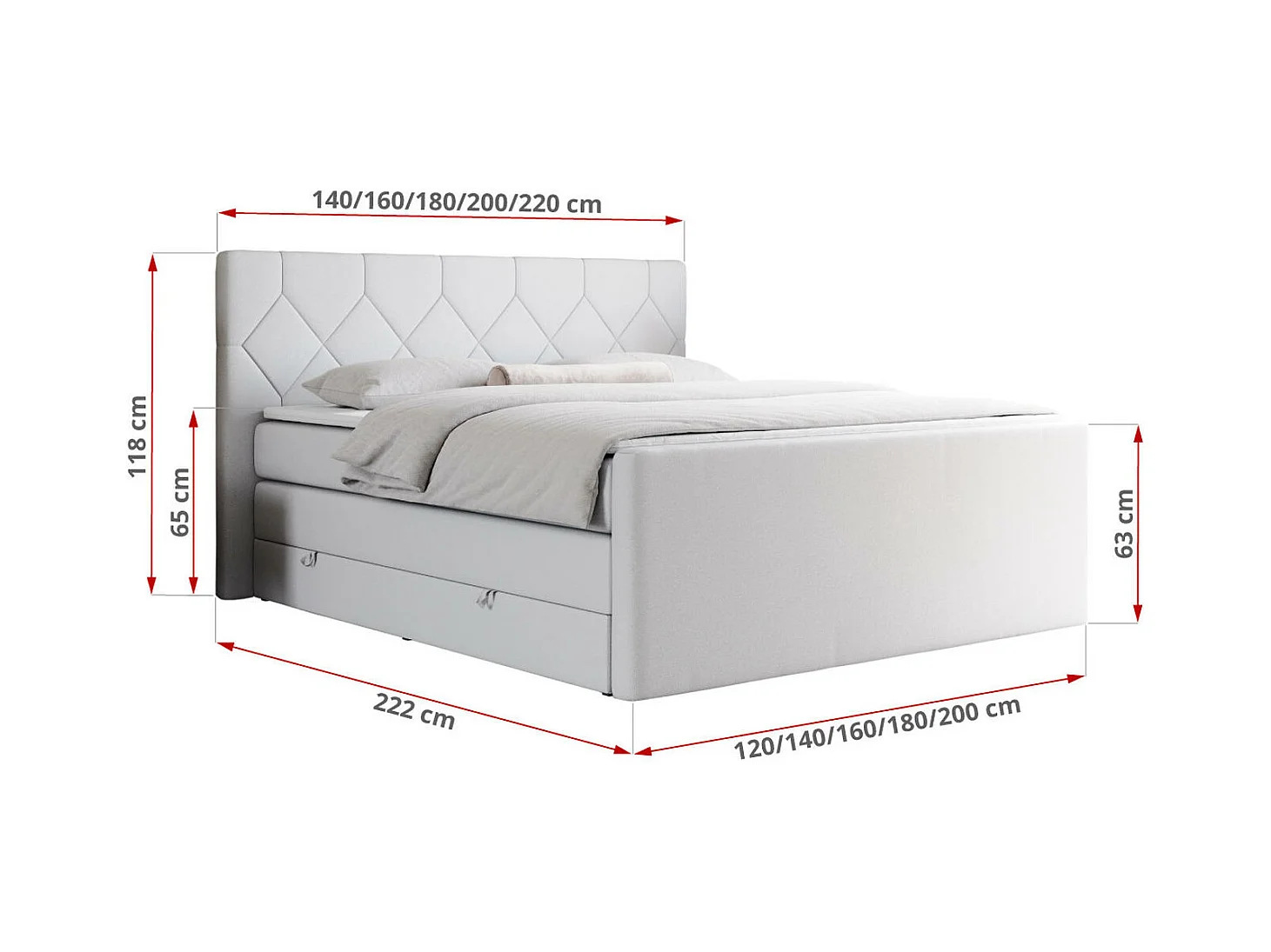 Boxspringbett EIGAR KING - Doppelbett mit genähtem Kopfteil, zwei Multipocket-Matratzen, Polsterbett für Schlafzimmer - 140x200 cm - H4 - Weiß Kunstleder