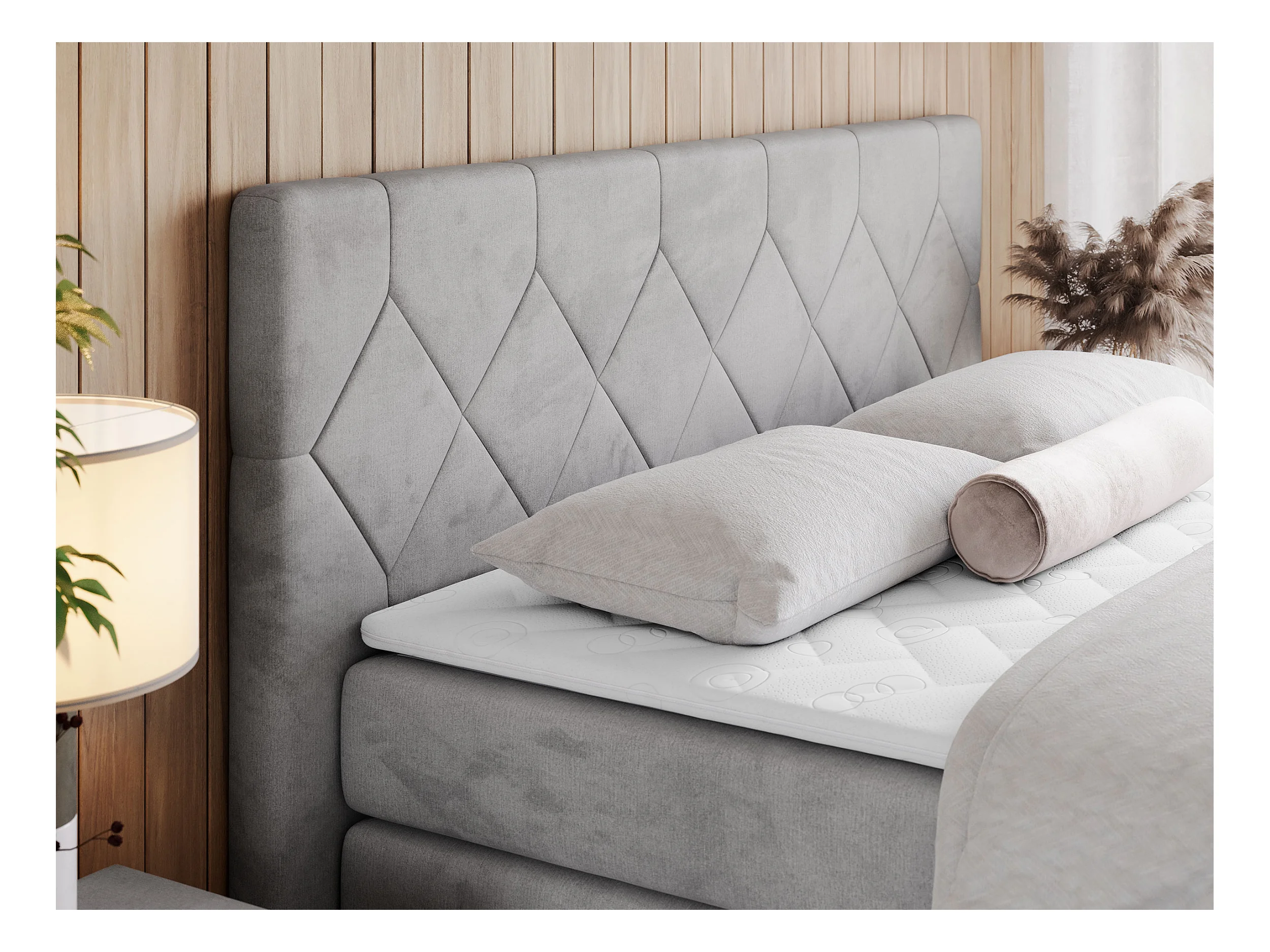 Boxspringbett EIGAR KING - Doppelbett mit genähtem Kopfteil, zwei Multipocket-Matratzen, Polsterbett für Schlafzimmer - 160x200 cm - H3 - Hellgrau Velvet