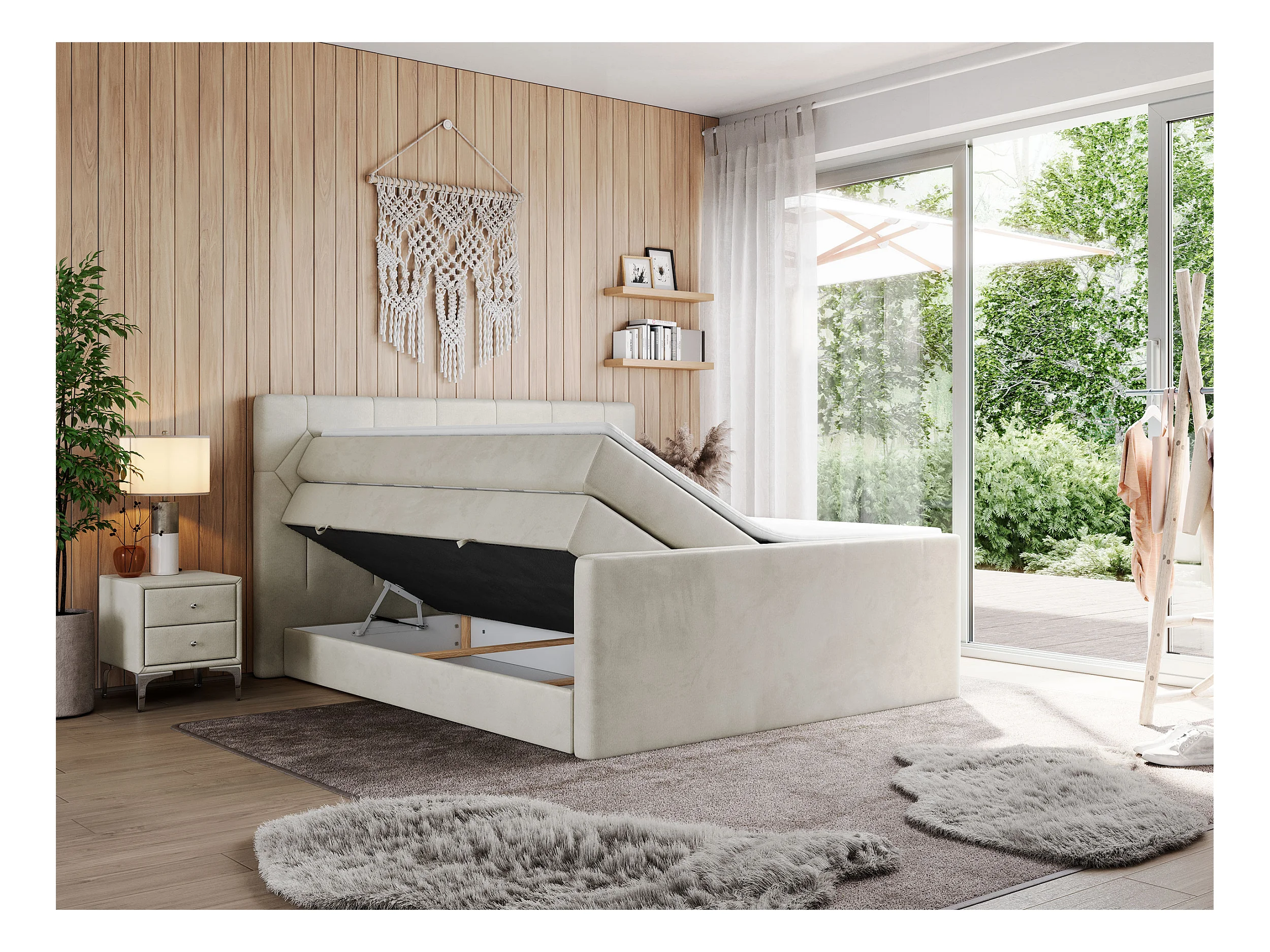 Boxspringbett EIGAR KING - Doppelbett mit genähtem Kopfteil, zwei Multipocket-Matratzen, Polsterbett für Schlafzimmer - 160x200 cm - H4 - Beige Velvet