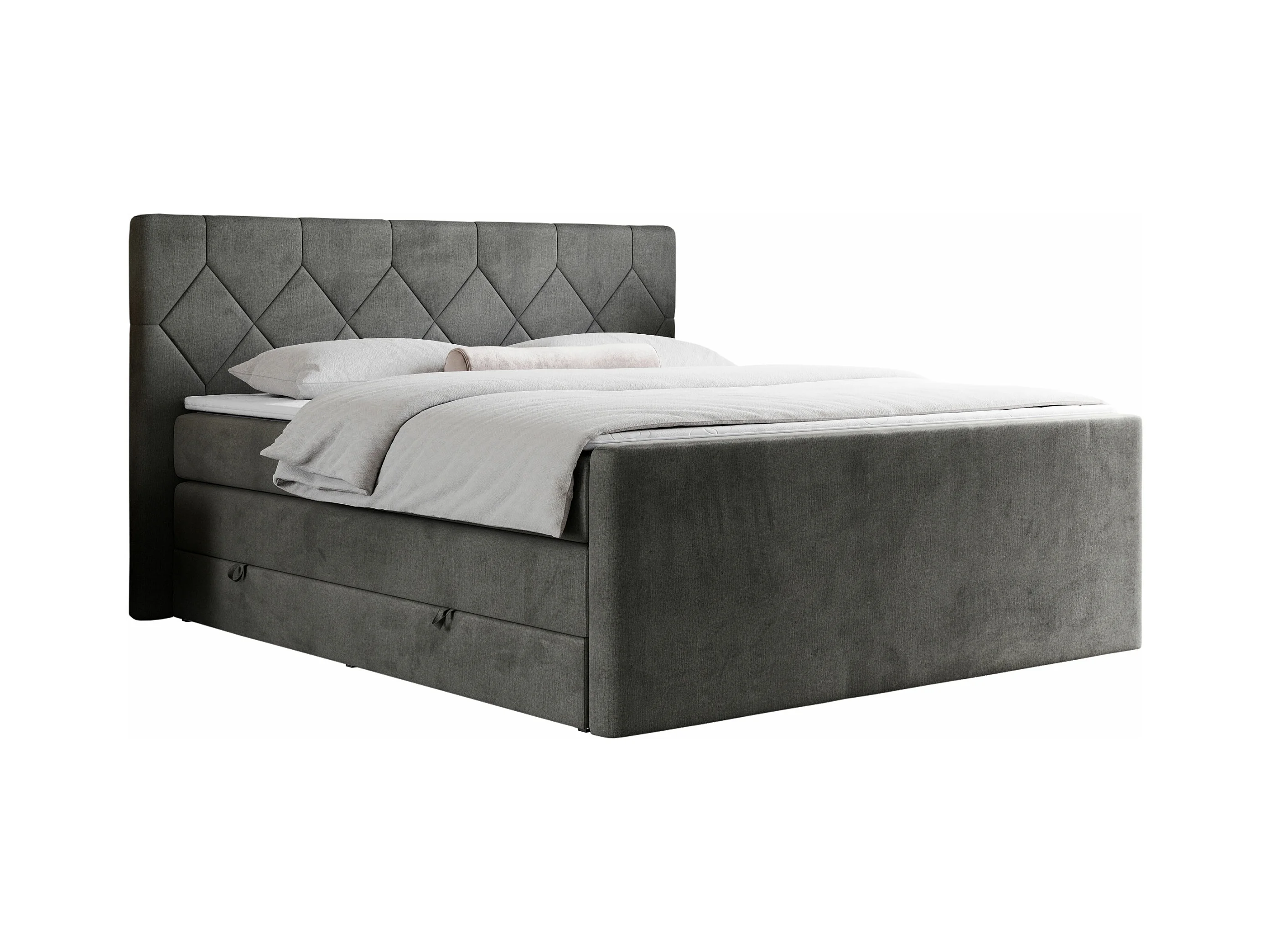 Boxspringbett EIGAR KING - Doppelbett mit genähtem Kopfteil, zwei Multipocket-Matratzen, Polsterbett für Schlafzimmer - 160x200 cm - H4 - Dunkelgrau Velvet