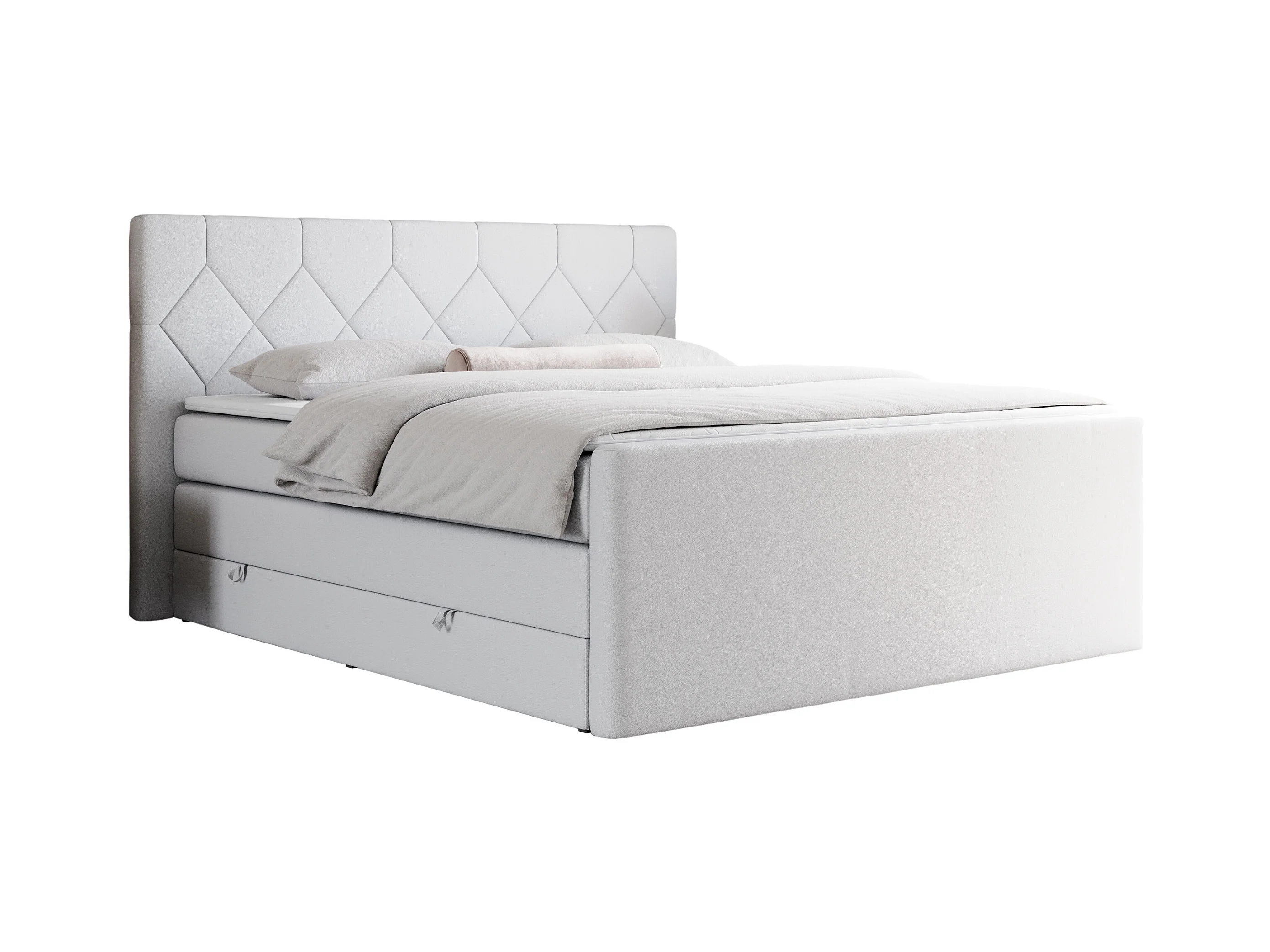 Boxspringbett EIGAR KING - Doppelbett mit genähtem Kopfteil, zwei Multipocket-Matratzen, Polsterbett für Schlafzimmer - 180x200 cm - H3 - Weiß Kunstleder