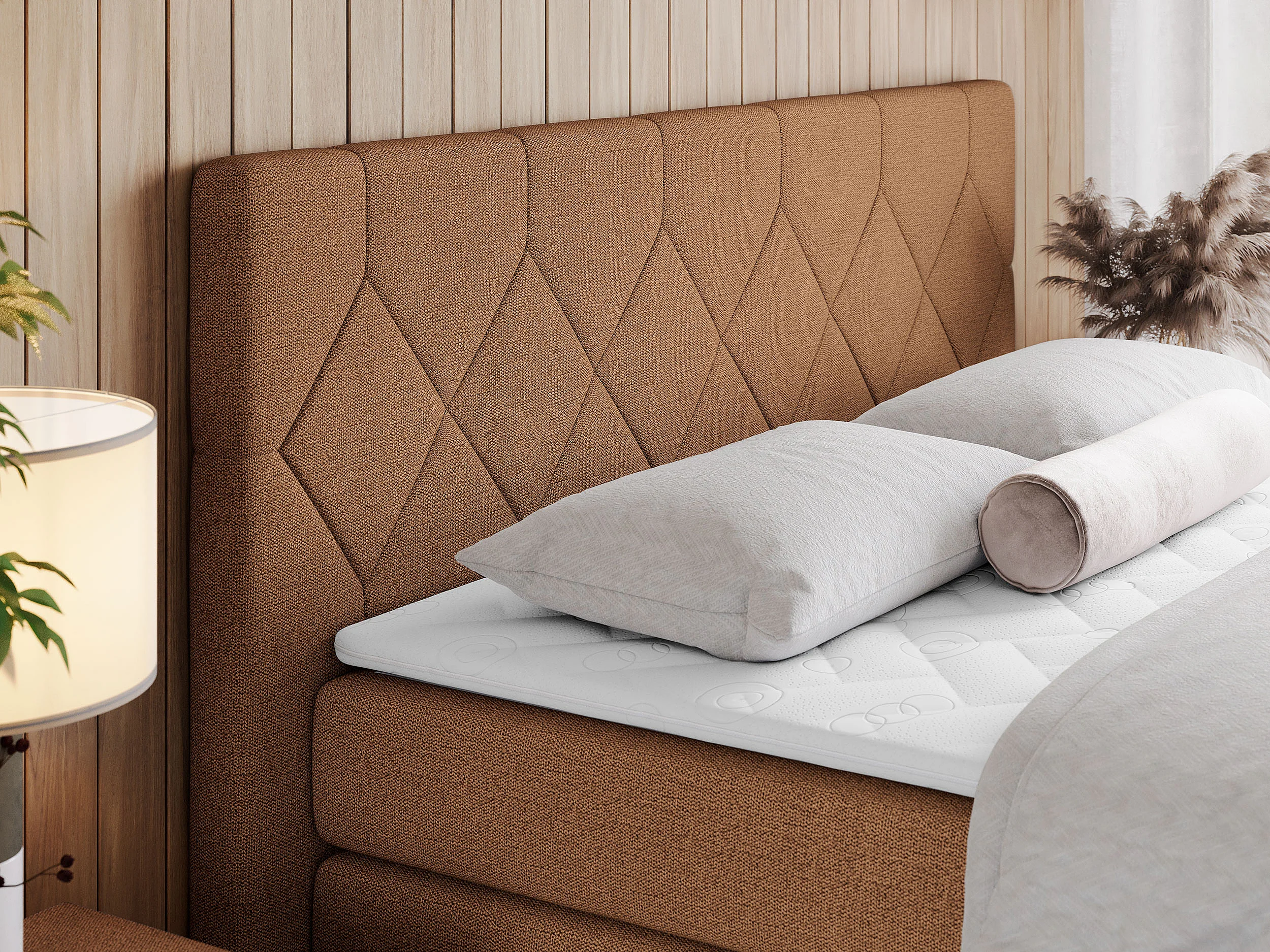 Boxspringbett EIGAR KING - Doppelbett mit genähtem Kopfteil, zwei Multipocket-Matratzen, Polsterbett für Schlafzimmer - 180x200 cm - H4 - Orange Strukture