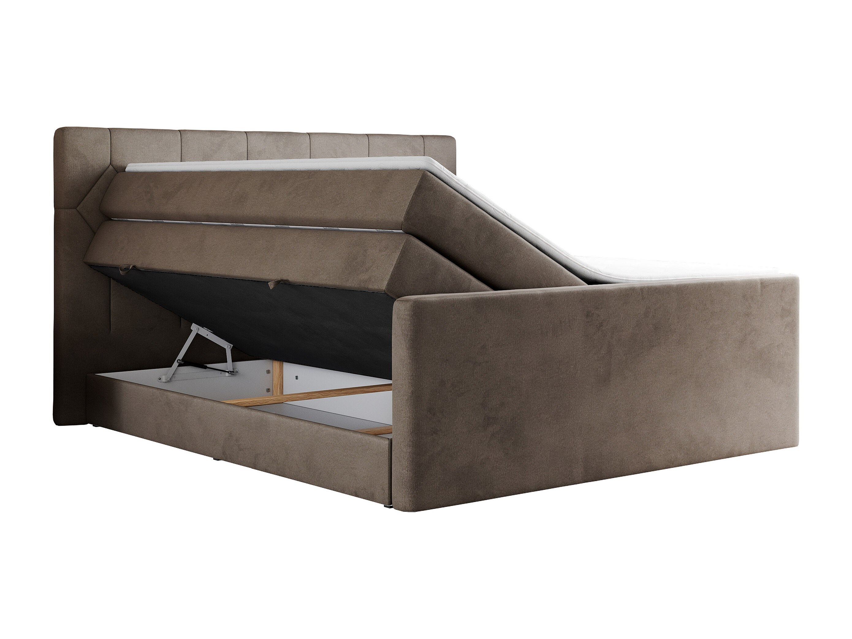 Boxspringbett EIGAR KING - Doppelbett mit genähtem Kopfteil, zwei Multipocket-Matratzen, Polsterbett für Schlafzimmer - 200x200 cm - H3 - Braun Velvet