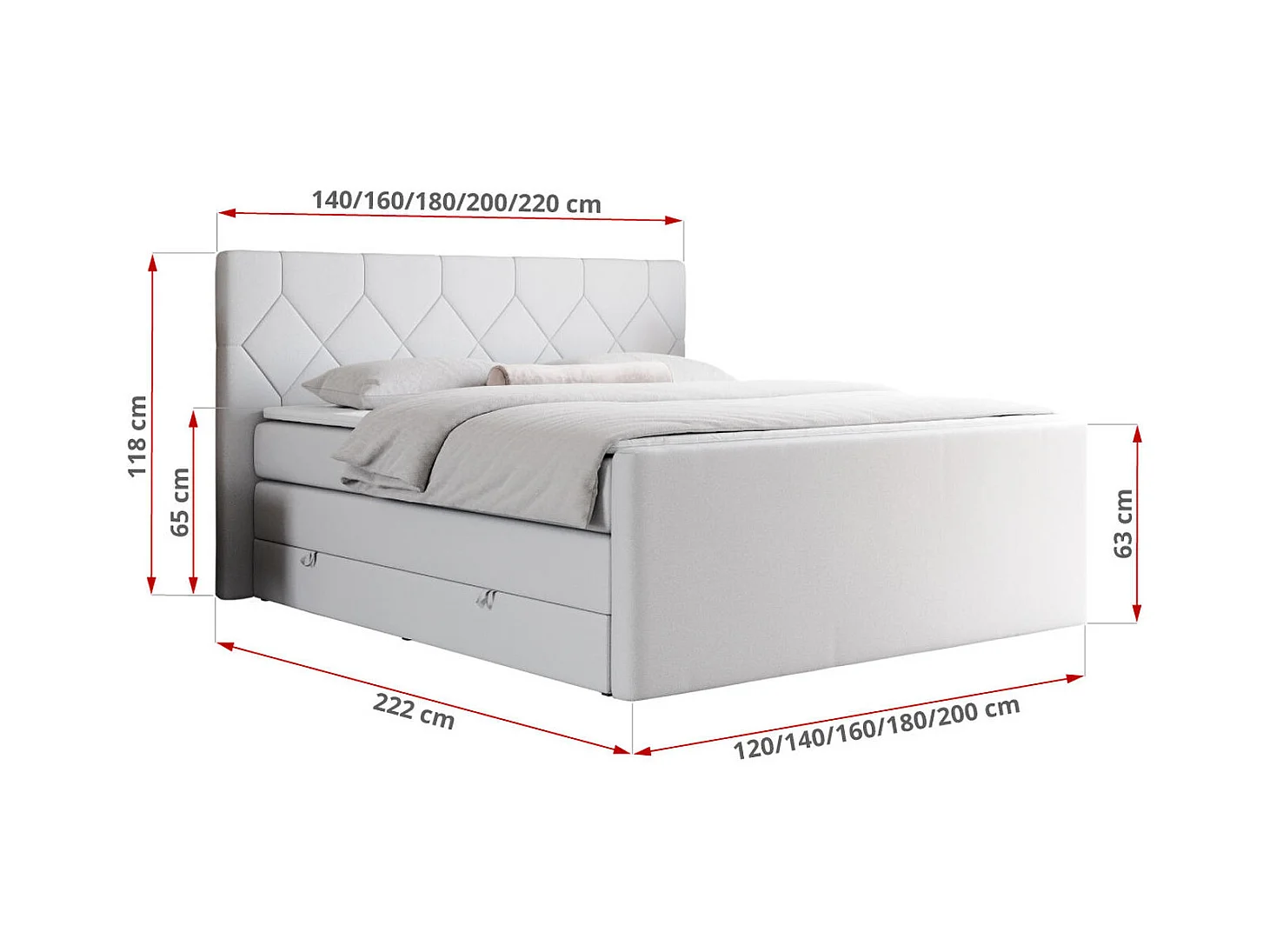 Boxspringbett EIGAR KING - Doppelbett mit genähtem Kopfteil, zwei Multipocket-Matratzen, Polsterbett für Schlafzimmer - 200x200 cm - H3 - Weiß Kunstleder