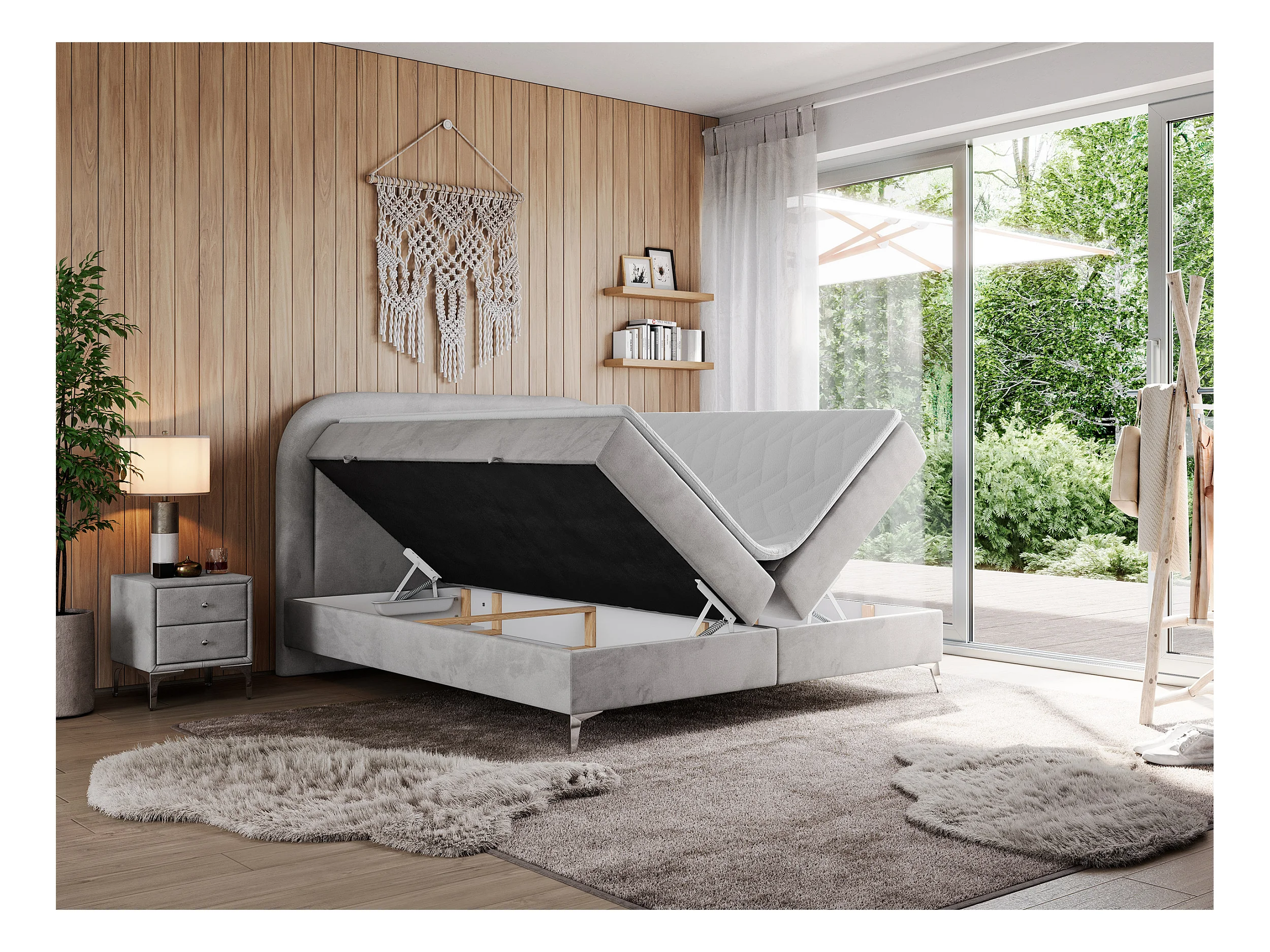 Boxspringbett EIRA - Polsterbett mit Stauraum, Set mit Kopfteil und Multipocket-Matratze, Metallbeine - 120x200 cm - H3 - Hellgrau Velvet