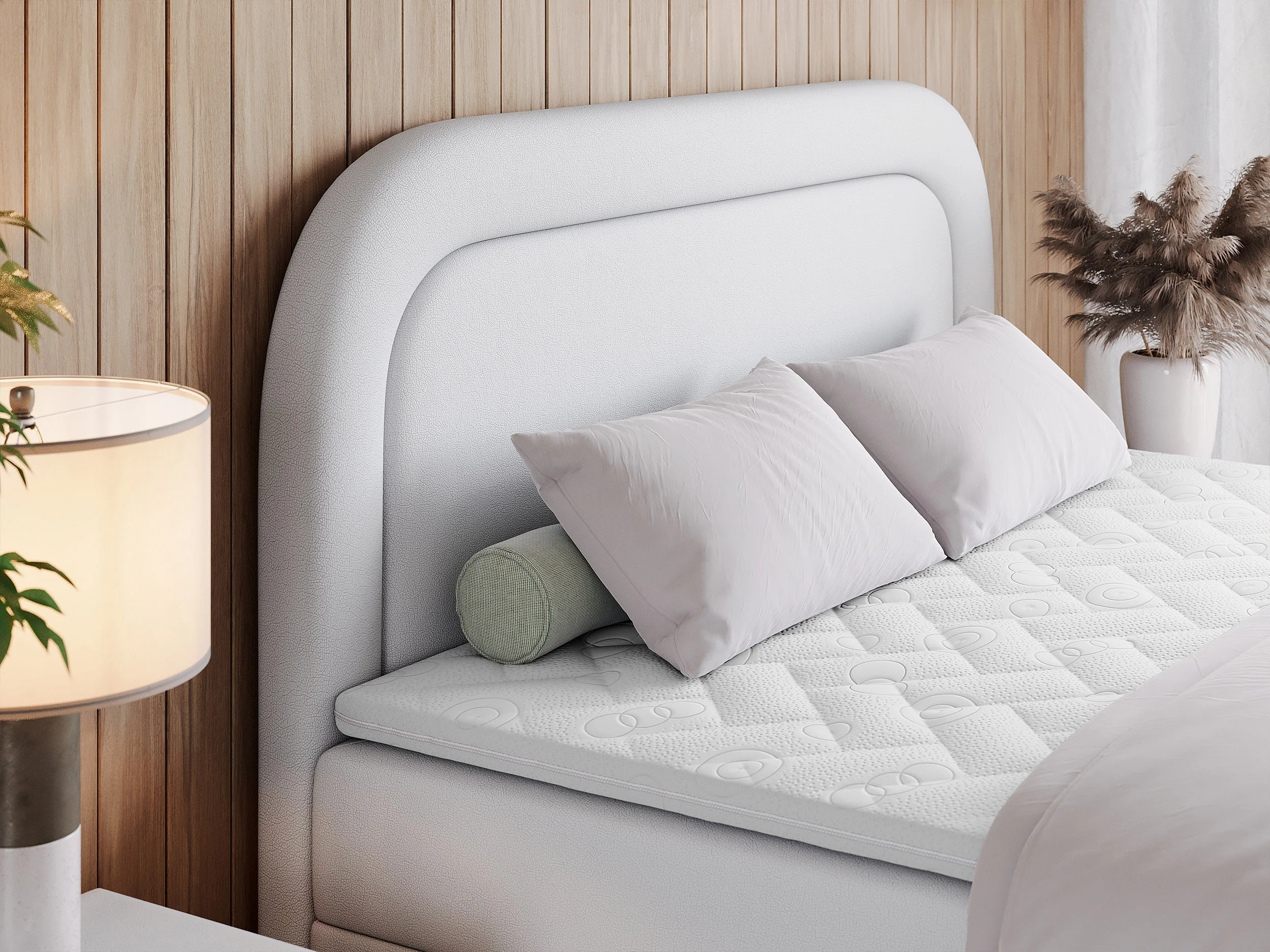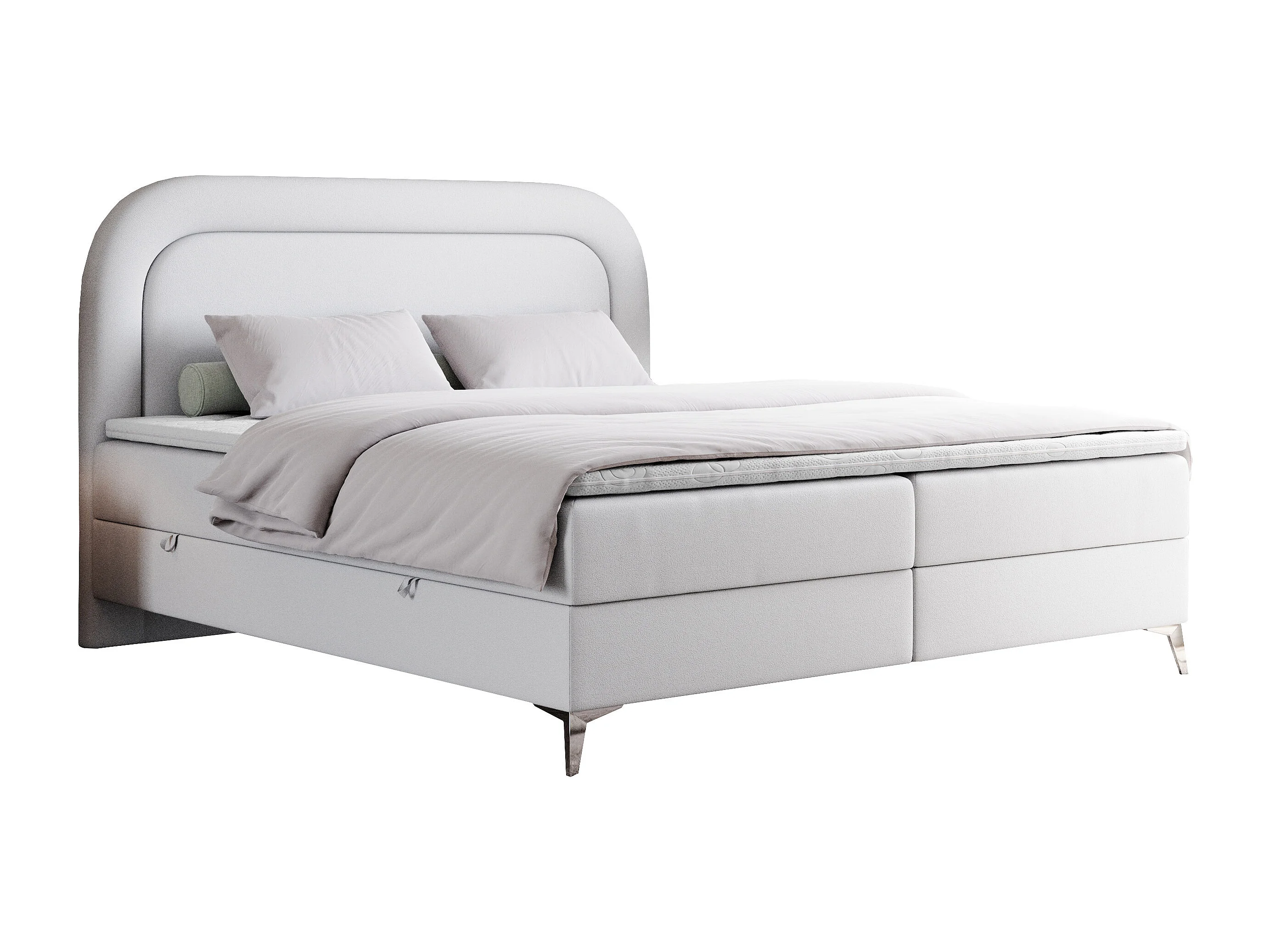 Boxspringbett EIRA - Polsterbett mit Stauraum, Set mit Kopfteil und Multipocket-Matratze, Metallbeine - 120x200 cm - H4 - Weiß Kunstleder