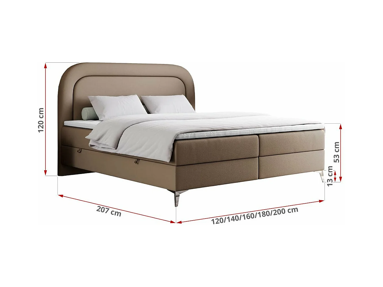 Boxspringbett EIRA - Polsterbett mit Stauraum, Set mit Kopfteil und Multipocket-Matratze, Metallbeine - 140x200 cm - H3 - Braun Kunstleder