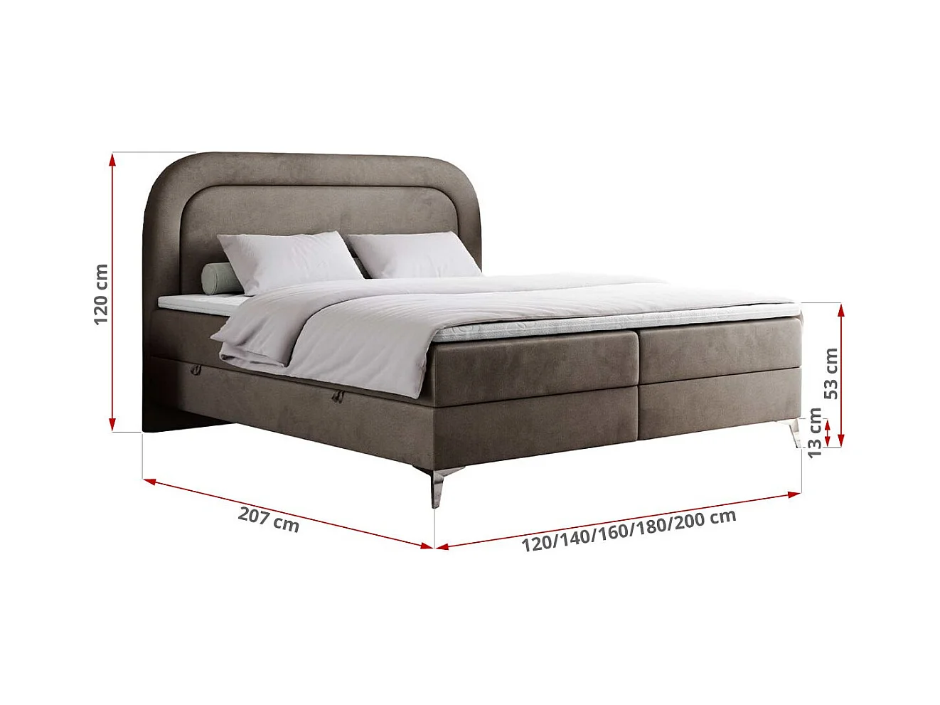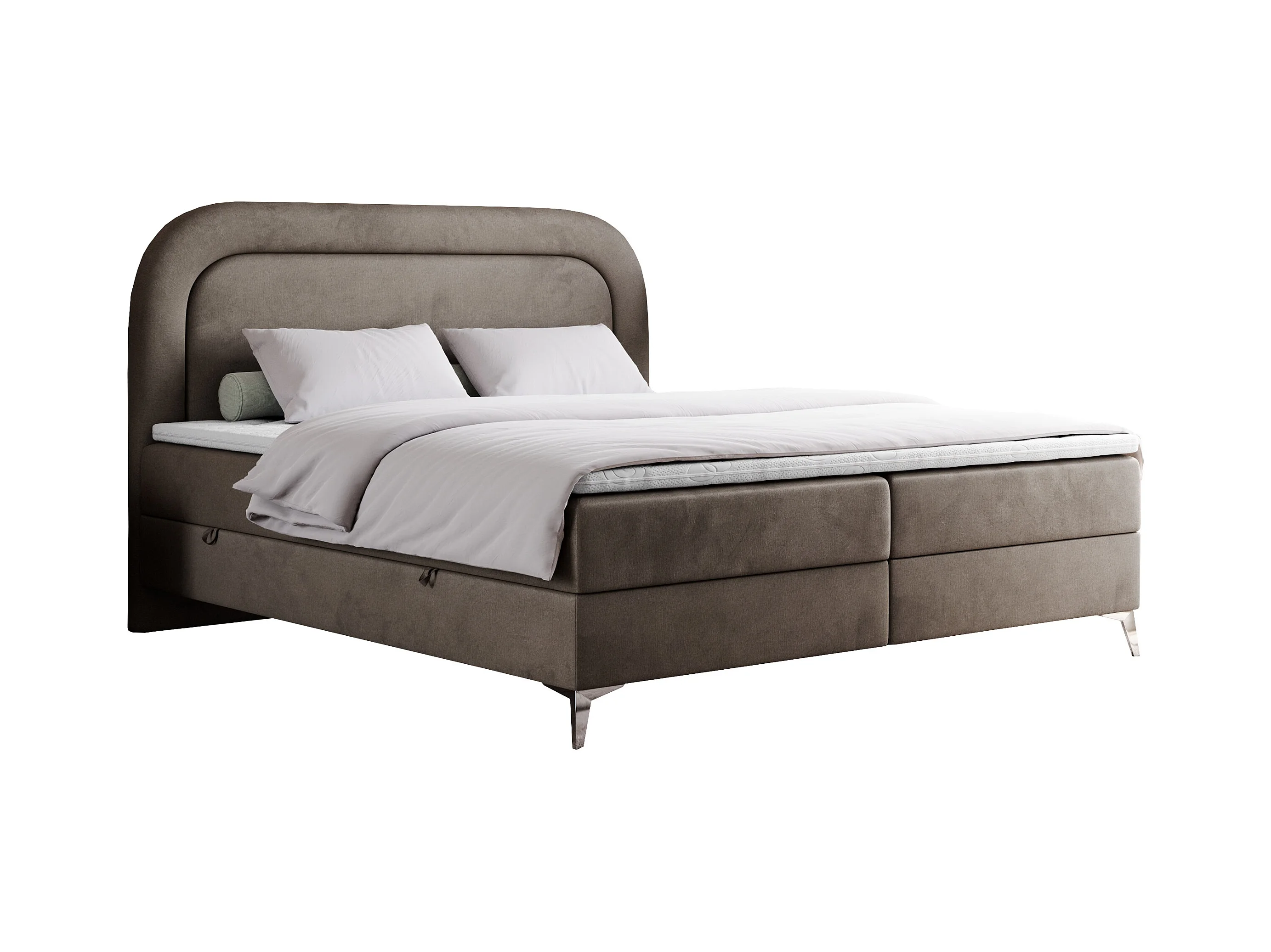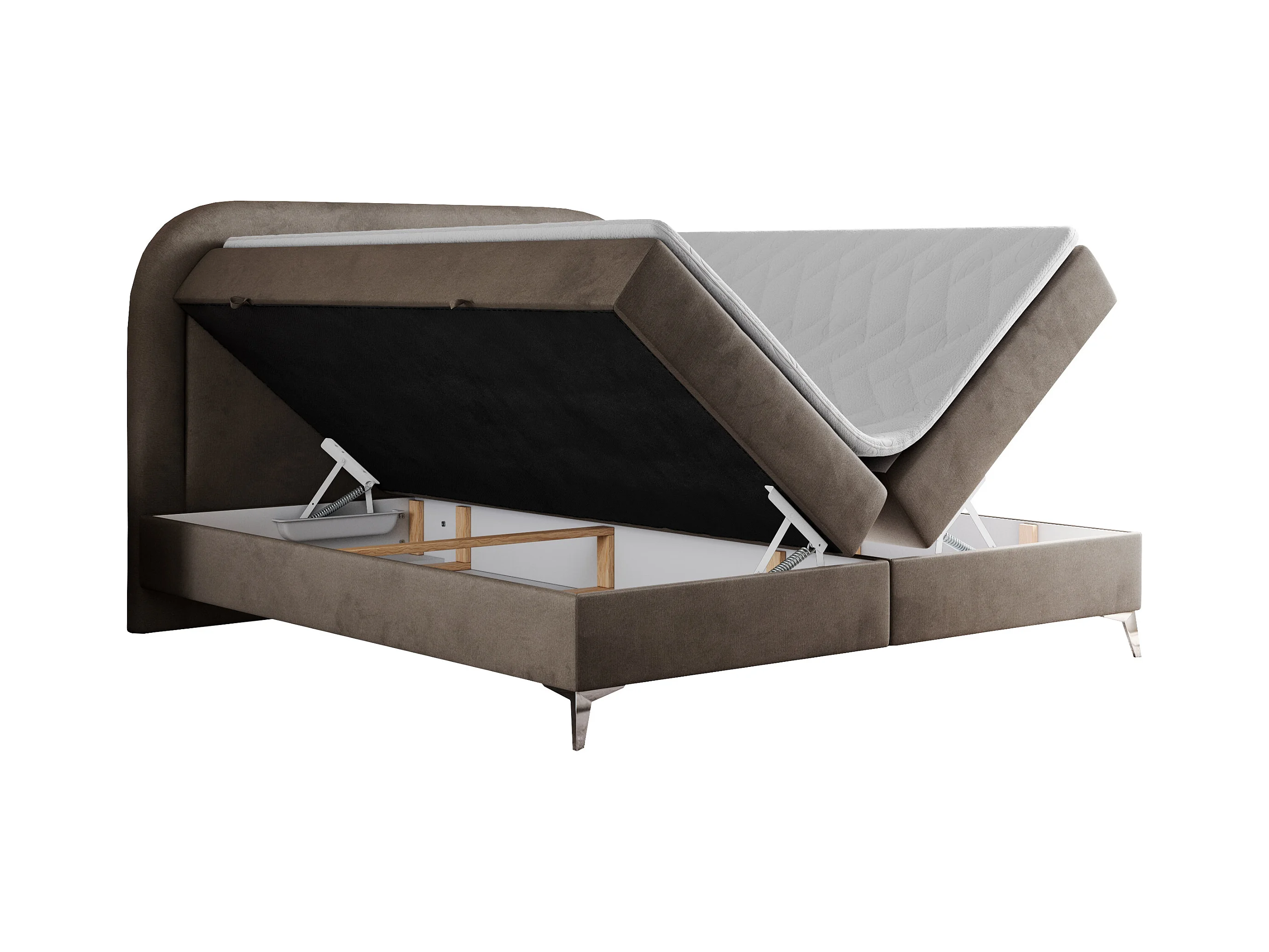 Boxspringbett EIRA - Polsterbett mit Stauraum, Set mit Kopfteil und Multipocket-Matratze, Metallbeine - 140x200 cm - H3 - Braun Velvet