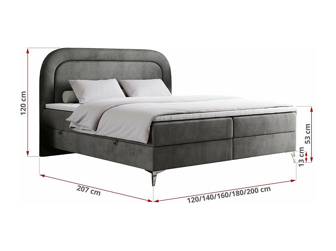 Boxspringbett EIRA - Polsterbett mit Stauraum, Set mit Kopfteil und Multipocket-Matratze, Metallbeine - 140x200 cm - H3 - Dunkelgrau Velvet