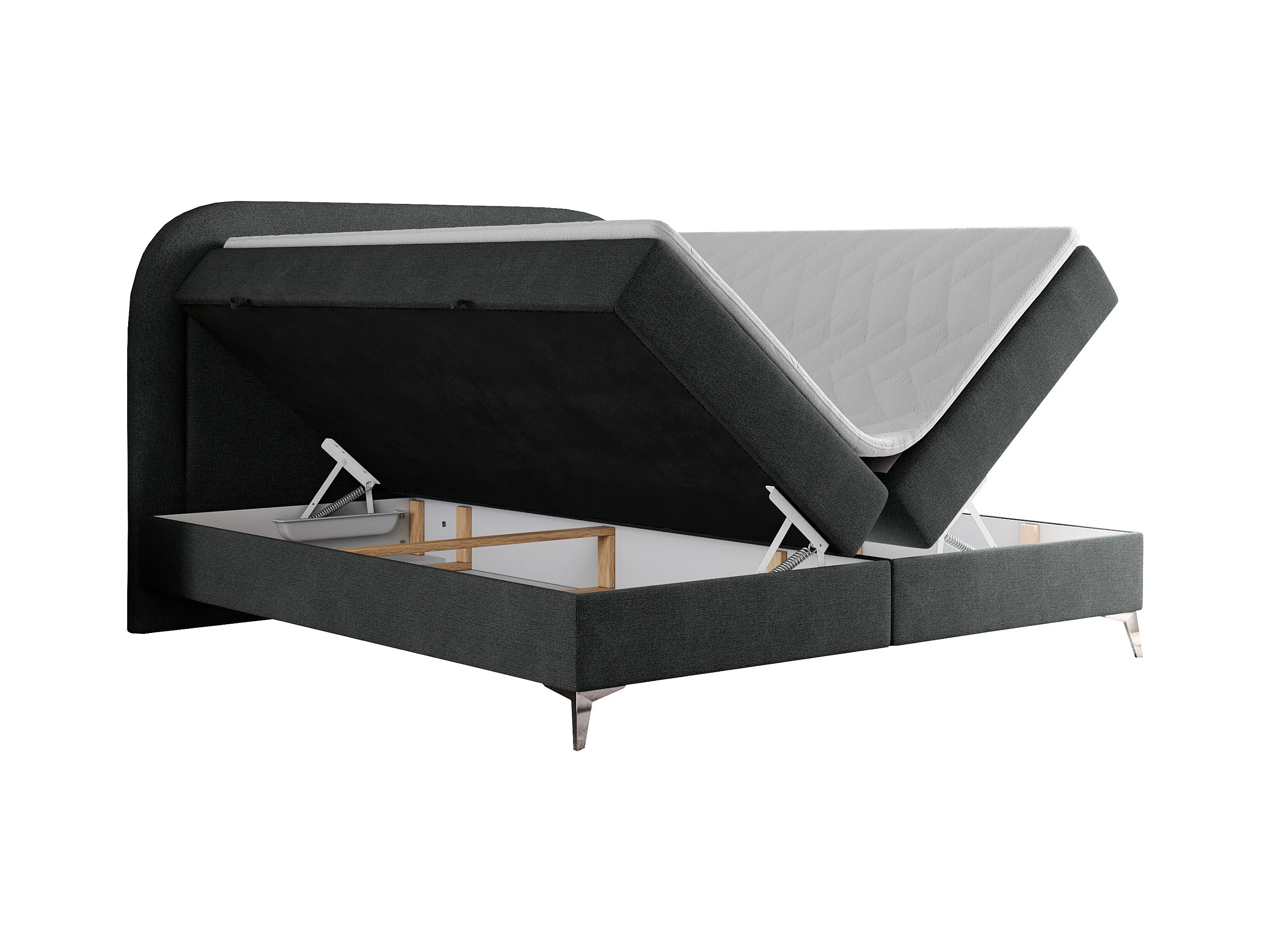 Boxspringbett EIRA - Polsterbett mit Stauraum, Set mit Kopfteil und Multipocket-Matratze, Metallbeine - 140x200 cm - H4 - Dunkelgrau Strukture
