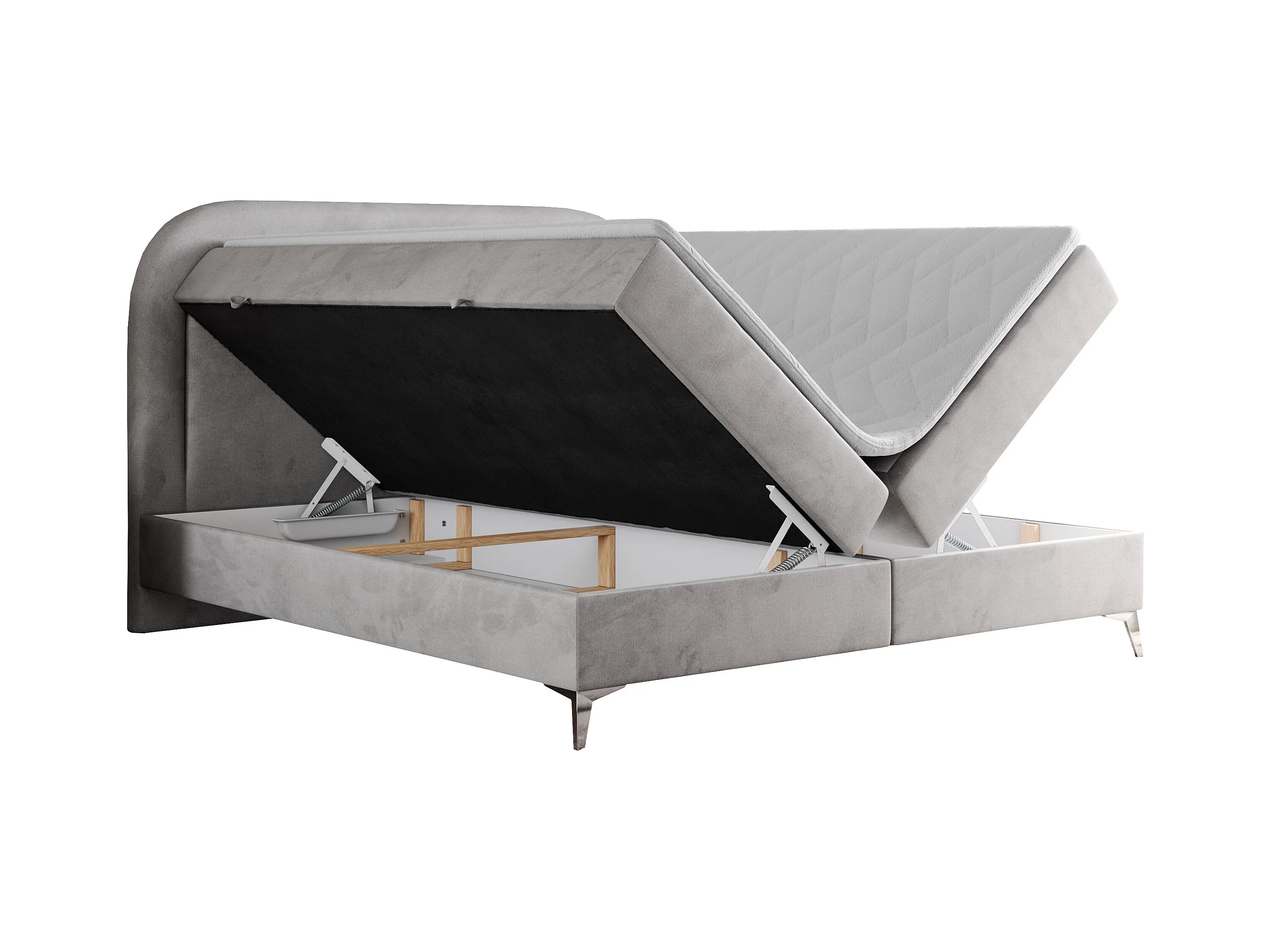 Boxspringbett EIRA - Polsterbett mit Stauraum, Set mit Kopfteil und Multipocket-Matratze, Metallbeine - 160x200 cm - H3 - Hellgrau Velvet