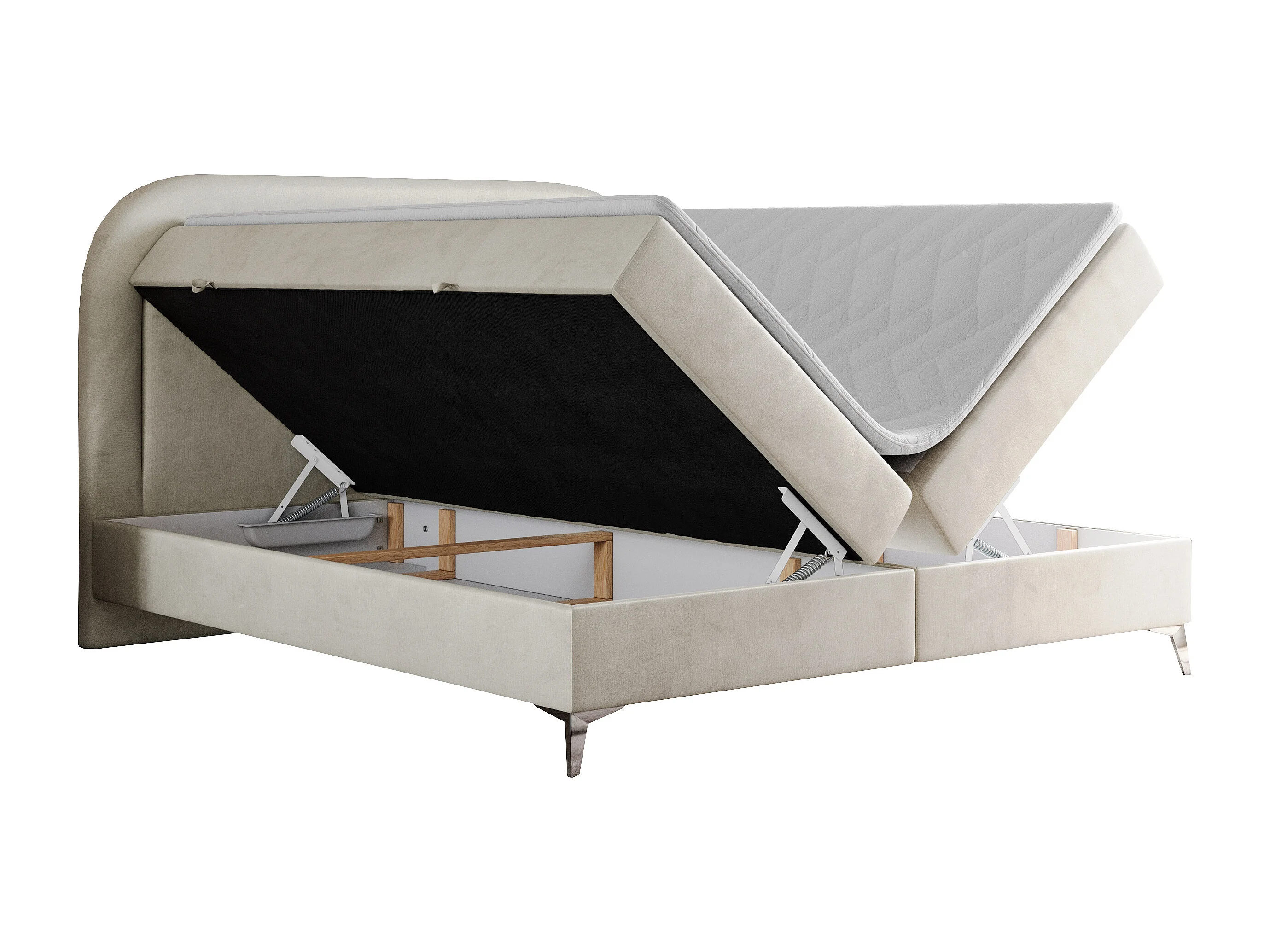 Boxspringbett EIRA - Polsterbett mit Stauraum, Set mit Kopfteil und Multipocket-Matratze, Metallbeine - 160x200 cm - H4 - Beige Velvet