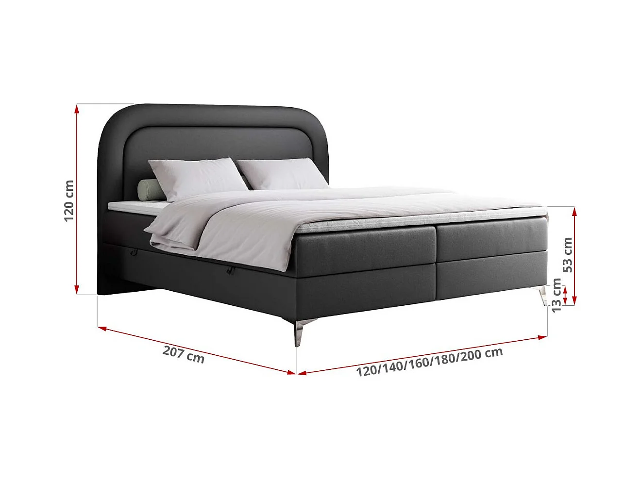 Boxspringbett EIRA - Polsterbett mit Stauraum, Set mit Kopfteil und Multipocket-Matratze, Metallbeine - 160x200 cm - H4 - Dunkelgrau Kunstleder