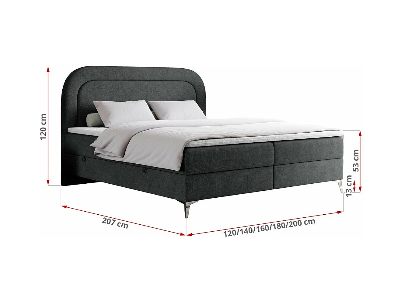 Boxspringbett EIRA - Polsterbett mit Stauraum, Set mit Kopfteil und Multipocket-Matratze, Metallbeine - 180x200 cm - H4 - Dunkelgrau Strukture