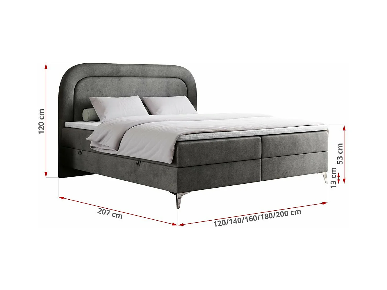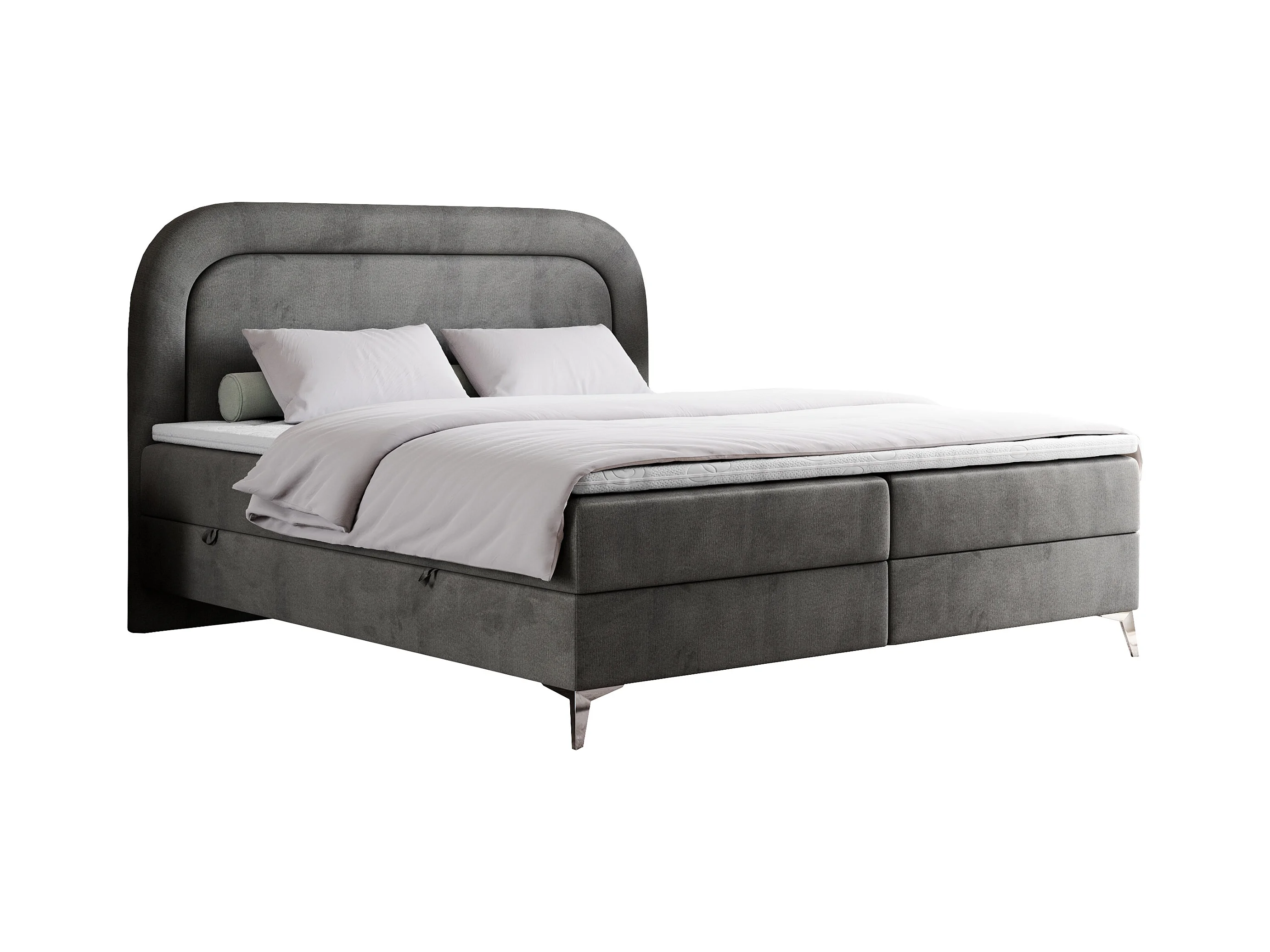 Boxspringbett EIRA - Polsterbett mit Stauraum, Set mit Kopfteil und Multipocket-Matratze, Metallbeine - 180x200 cm - H4 - Dunkelgrau Velvet