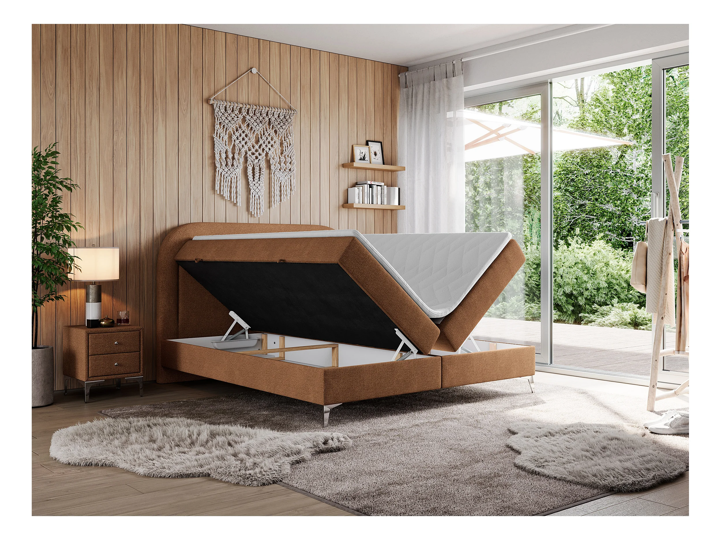 Boxspringbett EIRA - Polsterbett mit Stauraum, Set mit Kopfteil und Multipocket-Matratze, Metallbeine - 180x200 cm - H4 - Orange Strukture