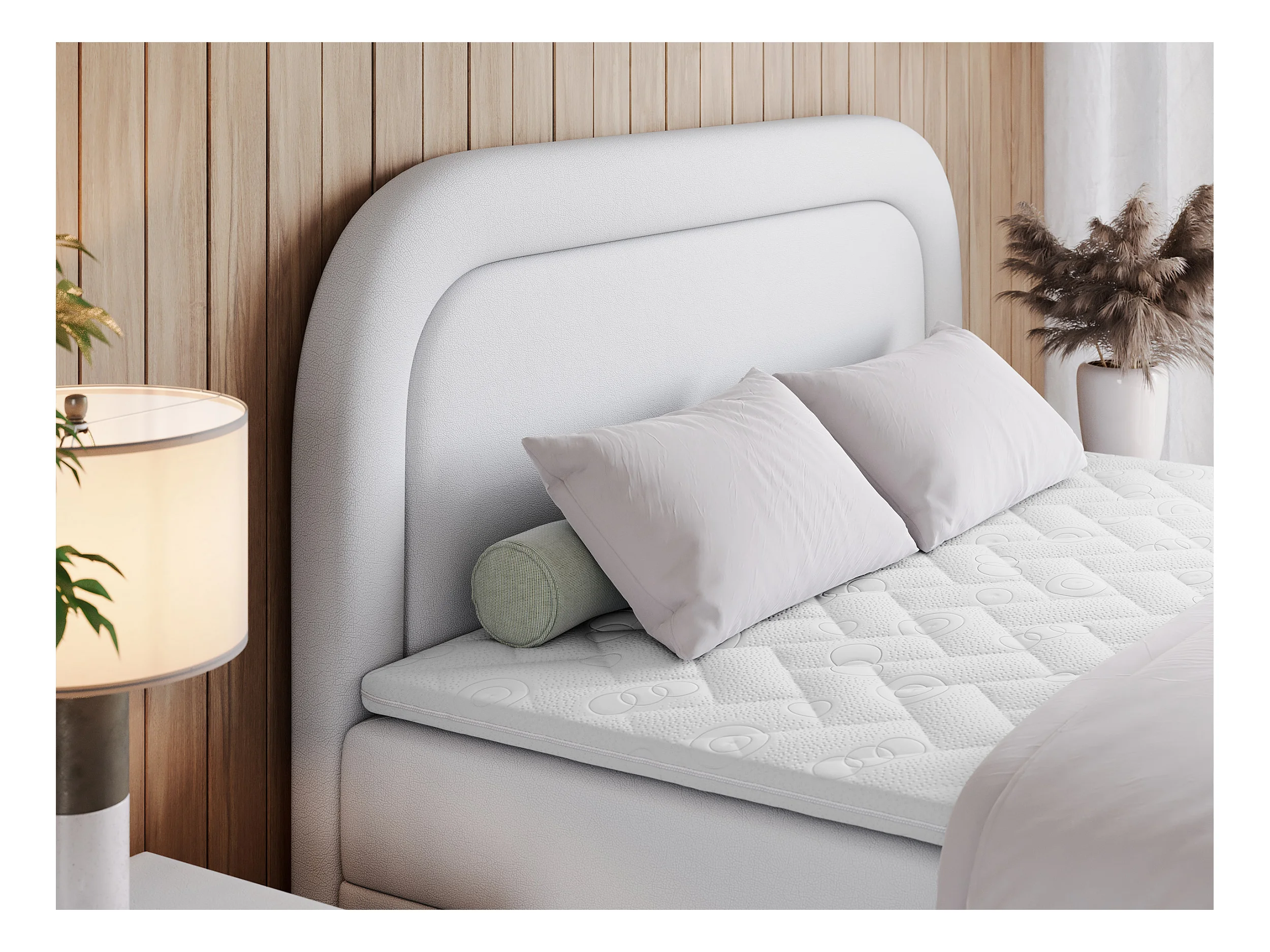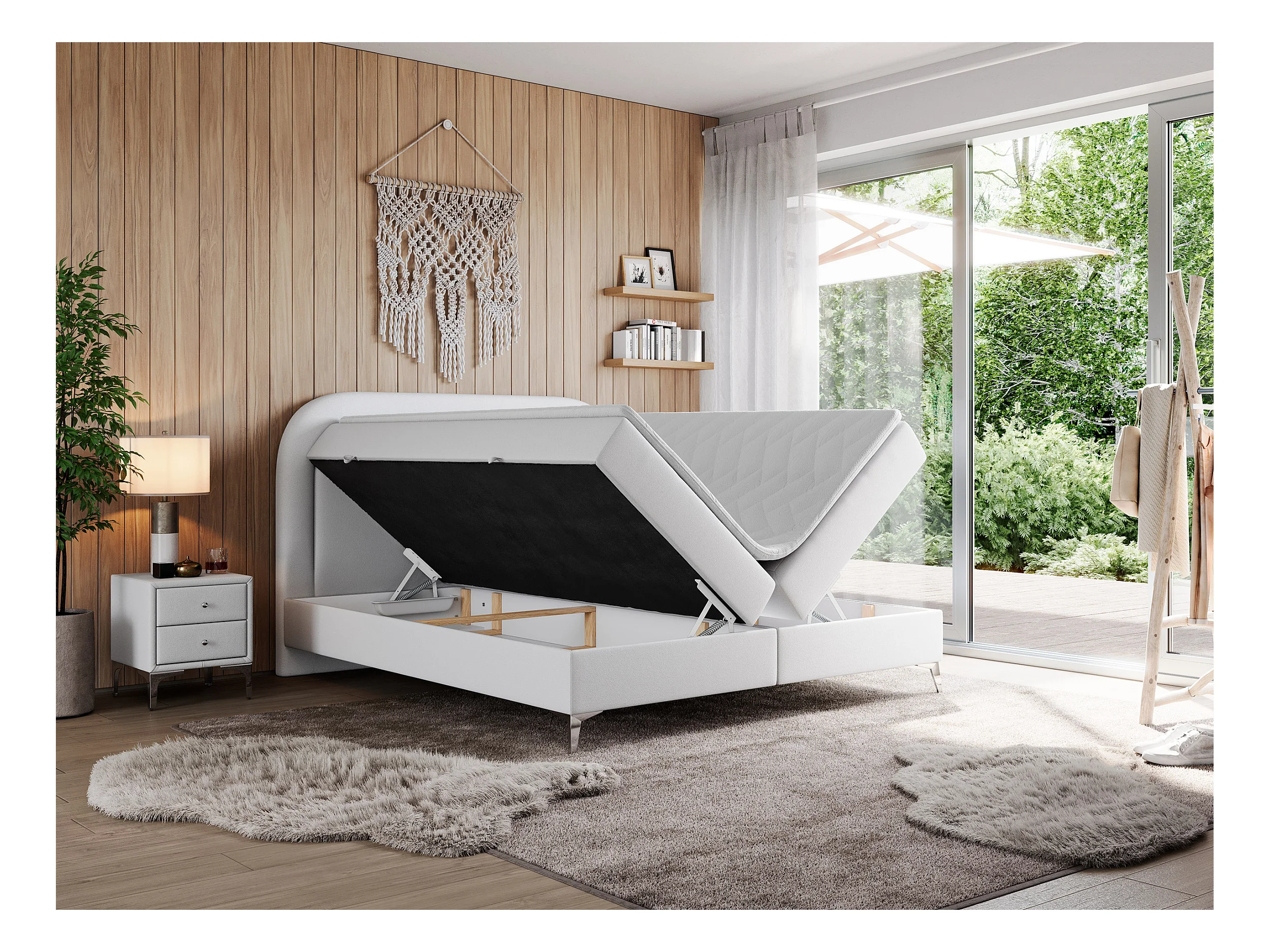 Boxspringbett EIRA - Polsterbett mit Stauraum, Set mit Kopfteil und Multipocket-Matratze, Metallbeine - 180x200 cm - H4 - Weiß Kunstleder