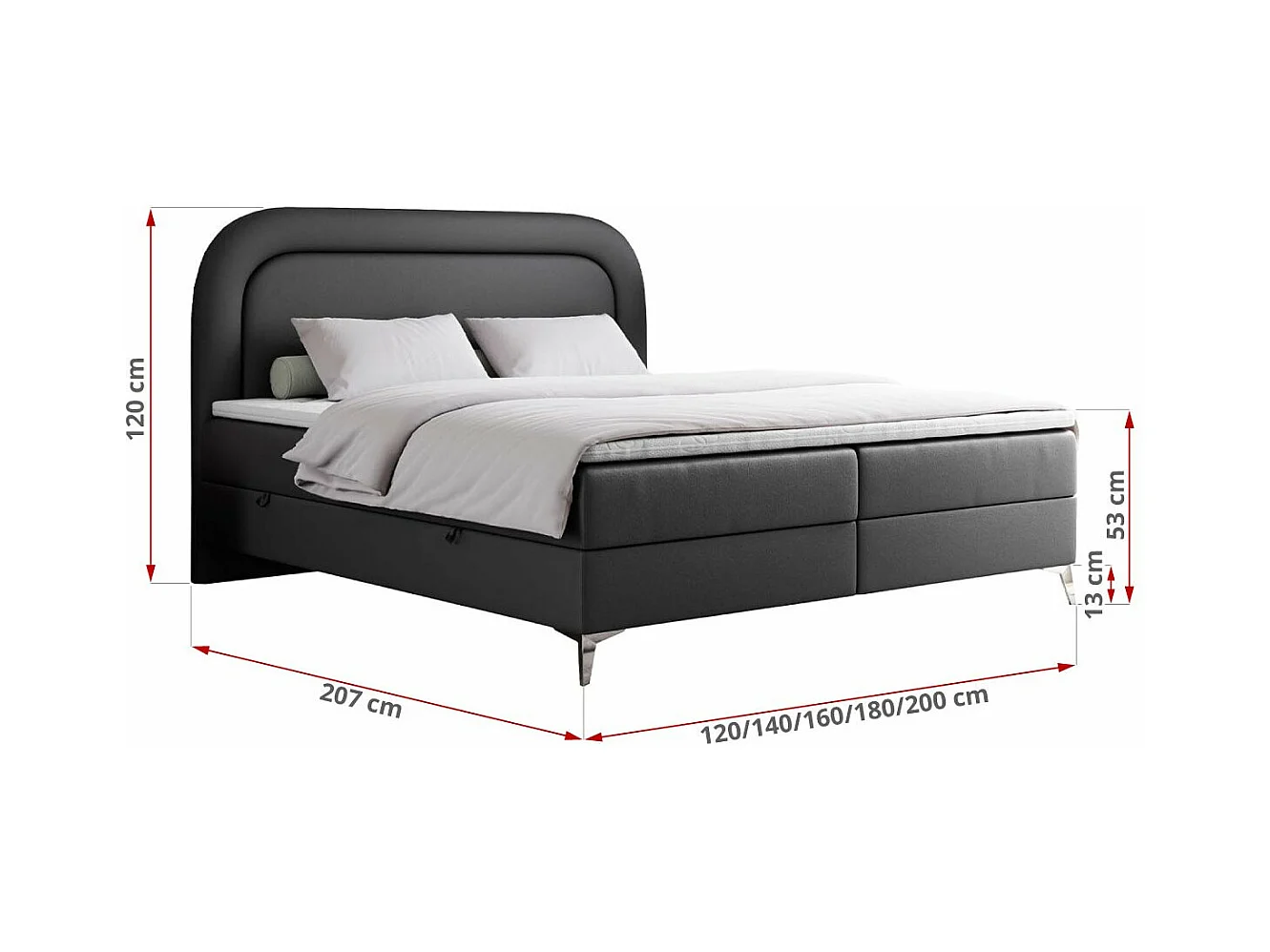 Boxspringbett EIRA - Polsterbett mit Stauraum, Set mit Kopfteil und Multipocket-Matratze, Metallbeine - 200x200 cm - H3 - Dunkelgrau Kunstleder