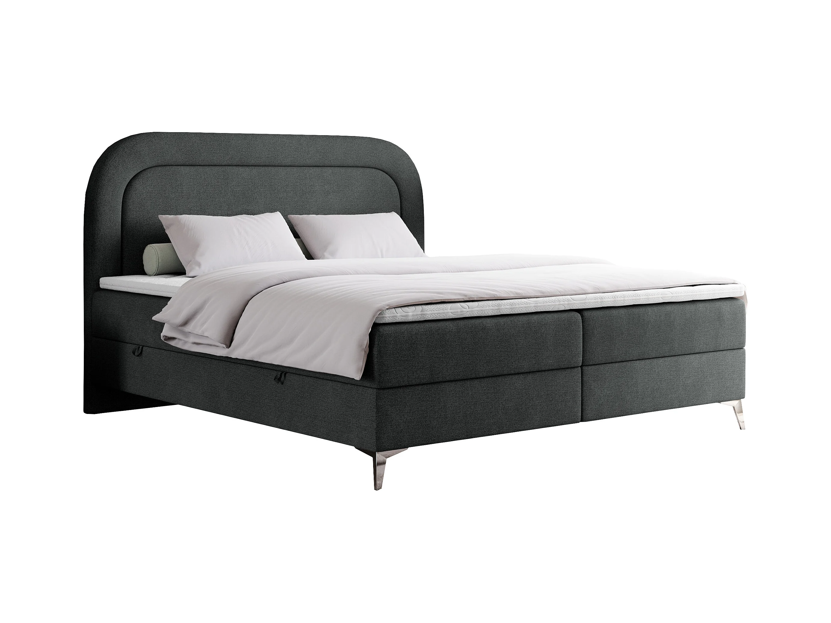 Boxspringbett EIRA - Polsterbett mit Stauraum, Set mit Kopfteil und Multipocket-Matratze, Metallbeine - 200x200 cm - H3 - Dunkelgrau Strukture