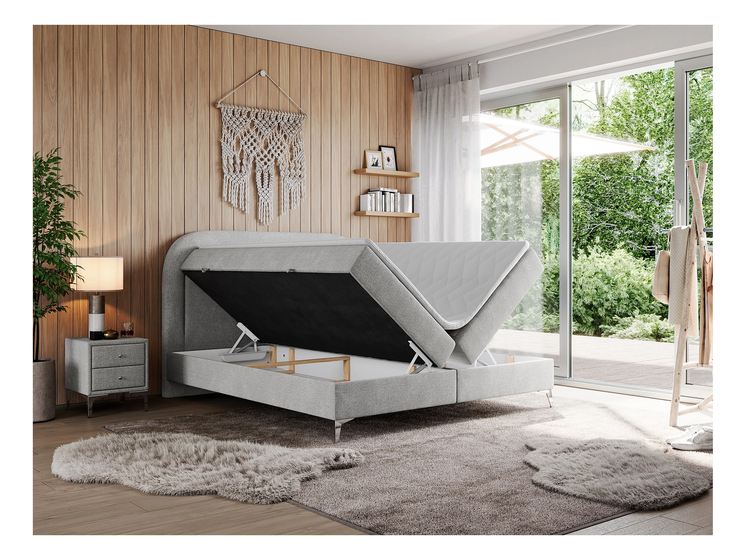 Boxspringbett EIRA - Polsterbett mit Stauraum, Set mit Kopfteil und Multipocket-Matratze, Metallbeine - 200x200 cm - H3 - Hellgrau Strukture