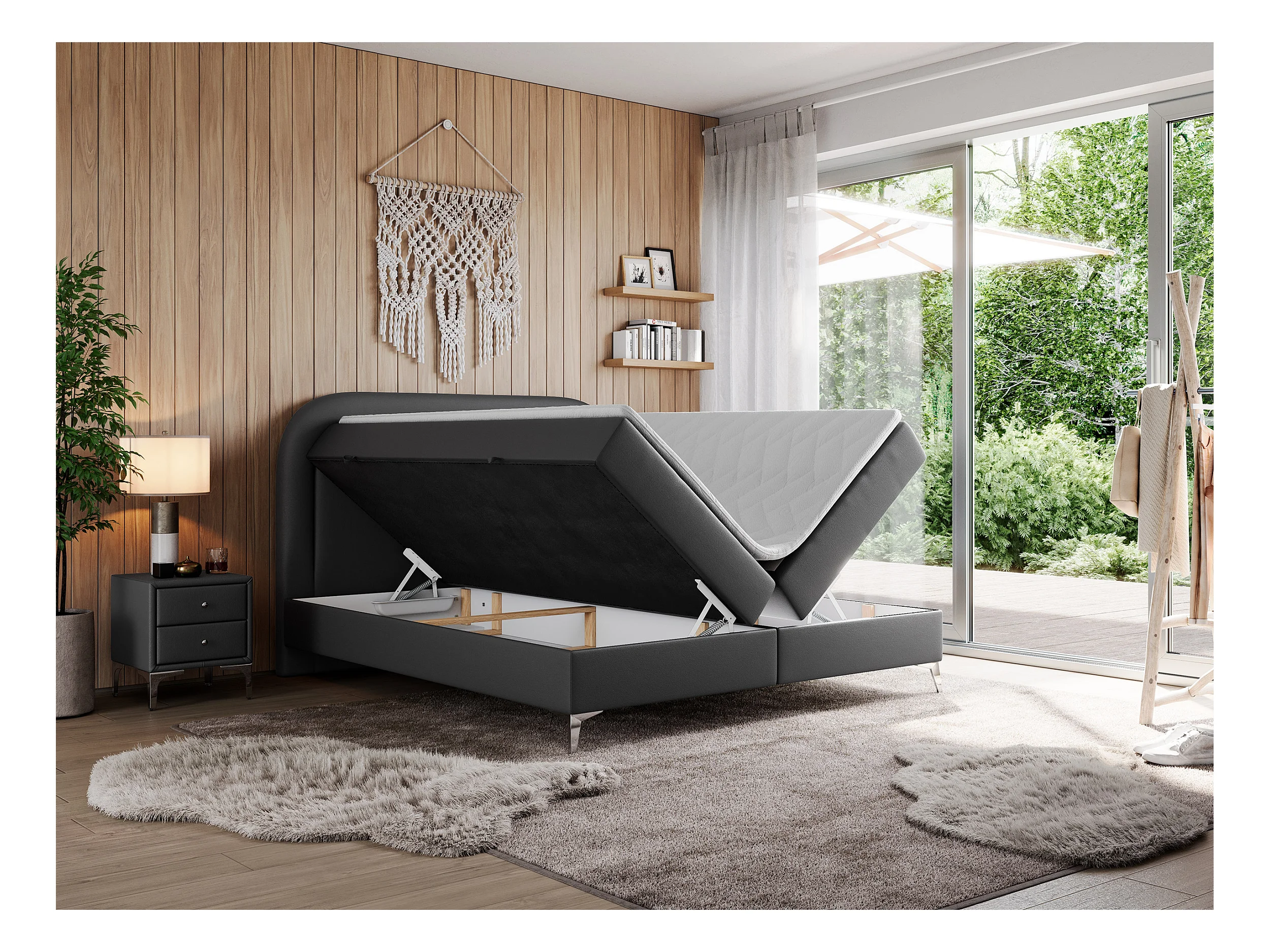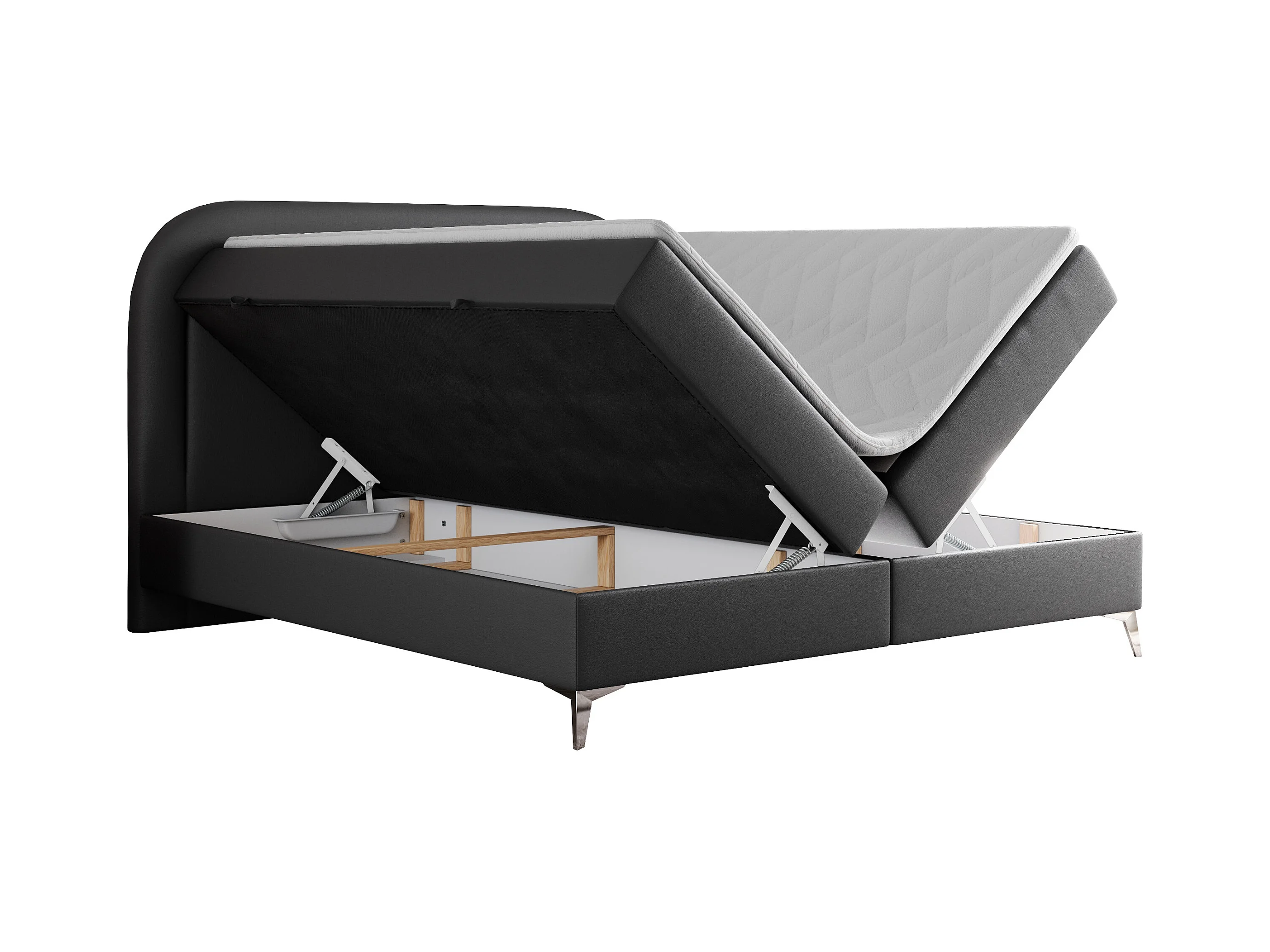 Boxspringbett EIRA - Polsterbett mit Stauraum, Set mit Kopfteil und Multipocket-Matratze, Metallbeine - 200x200 cm - H4 - Dunkelgrau Kunstleder