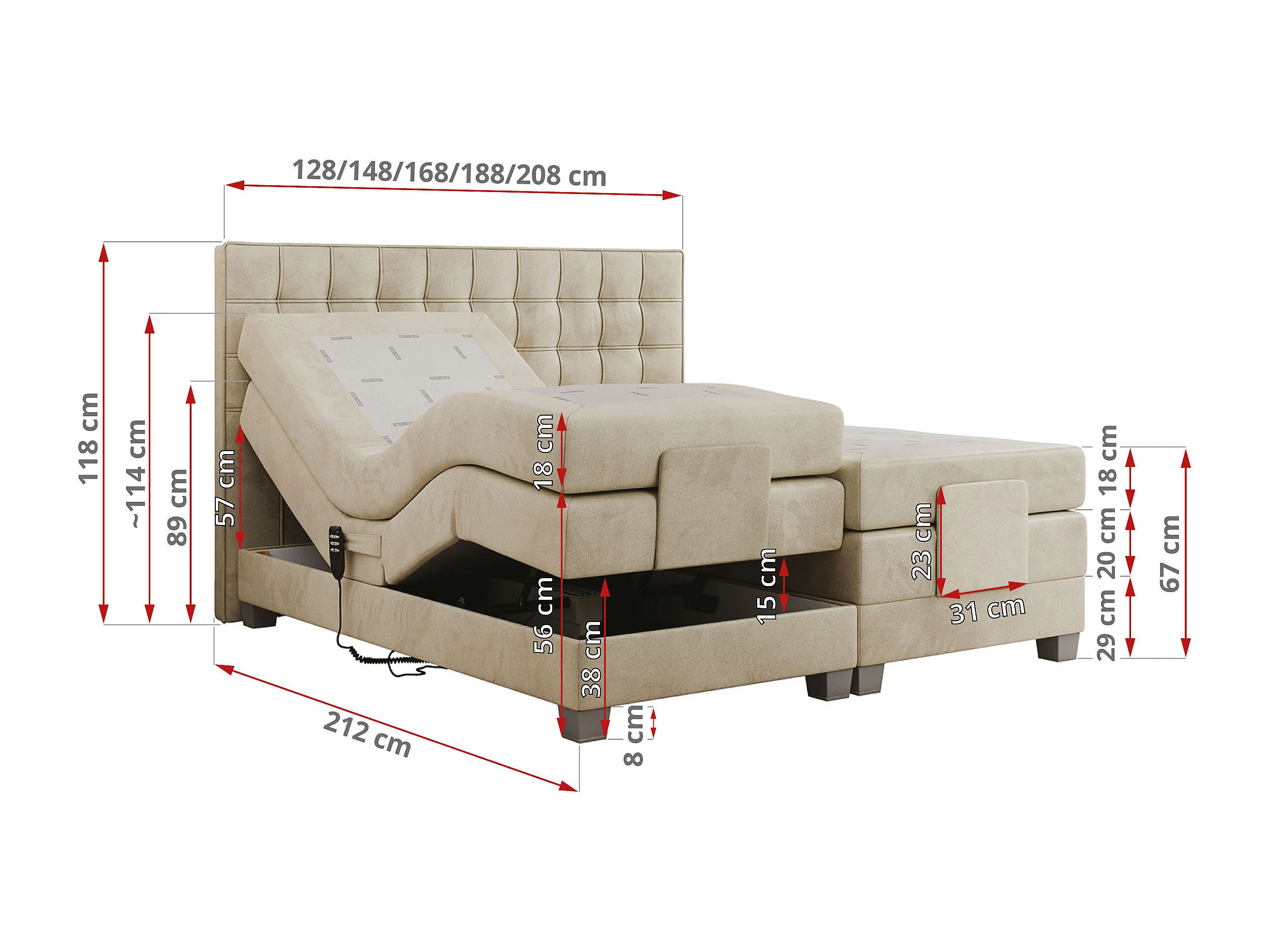 Boxspringbett ELEKTRO mit Multipocket-Matratze, Elektrisch verstellbare, genähtes Kopfteil - 140x200 cm - H3 - Beige Velvet