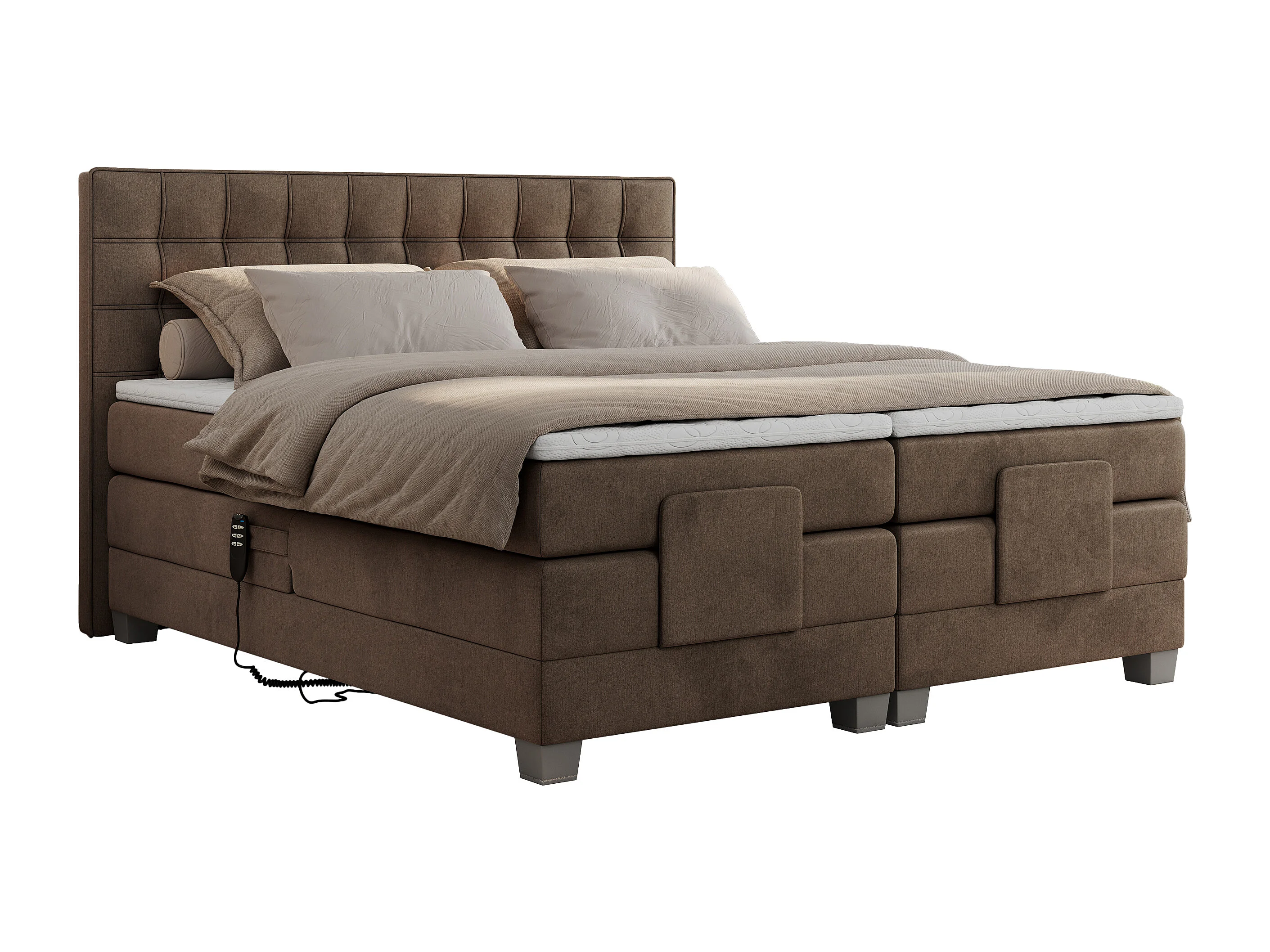 Boxspringbett ELEKTRO mit Multipocket-Matratze, Elektrisch verstellbare, genähtes Kopfteil - 140x200 cm - H3 - Braun Velvet