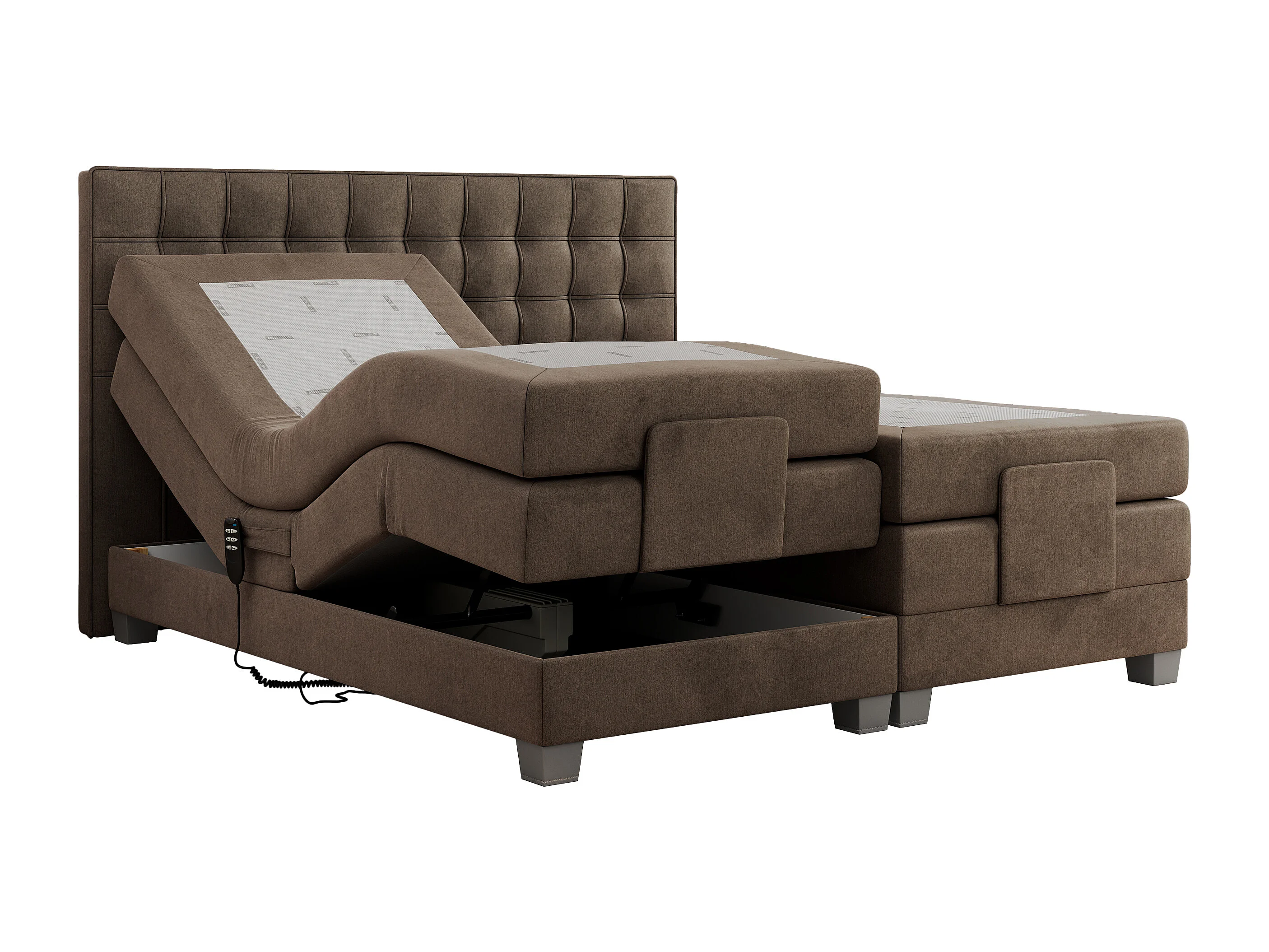 Boxspringbett ELEKTRO mit Multipocket-Matratze, Elektrisch verstellbare, genähtes Kopfteil - 160x200 cm - H3 - Braun Velvet