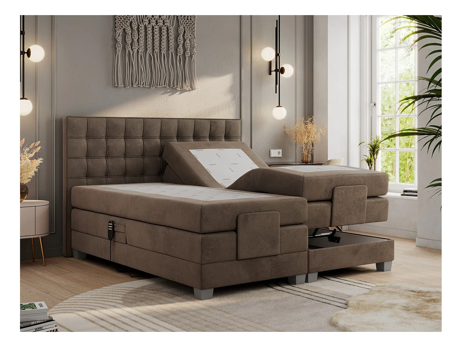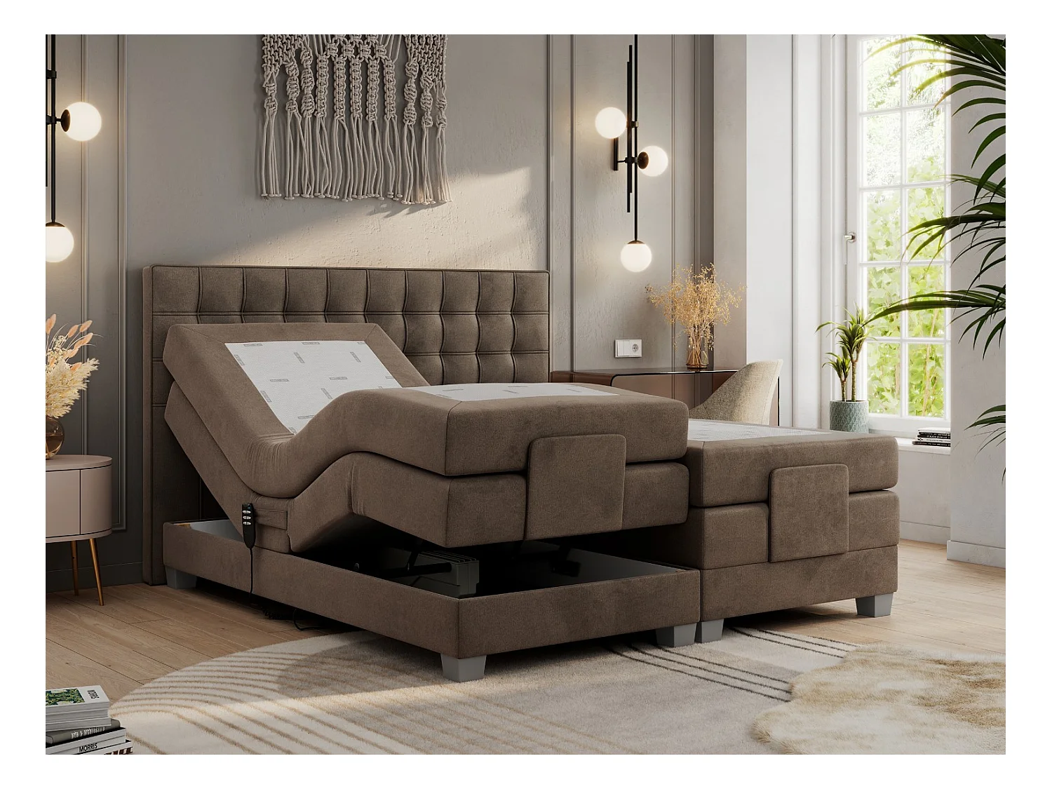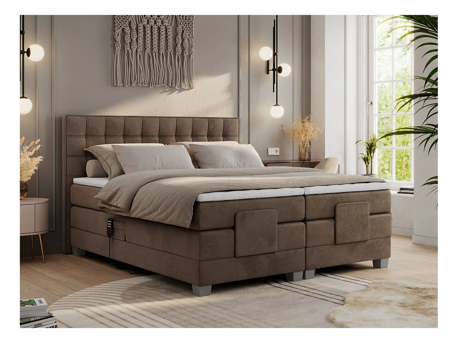 Boxspringbett ELEKTRO mit Multipocket-Matratze, Elektrisch verstellbare, genähtes Kopfteil - 180x200 cm - H3 - Braun Velvet
