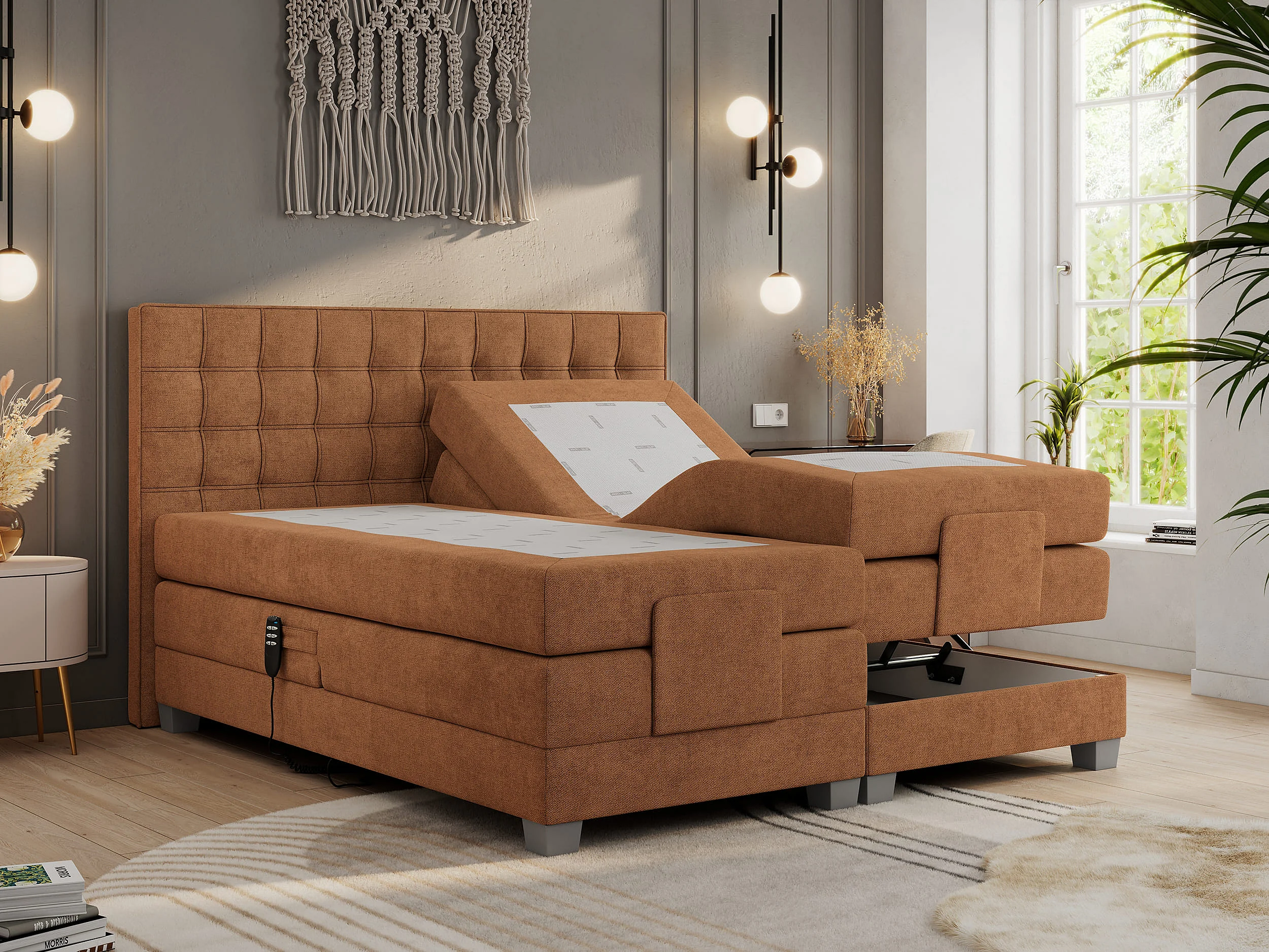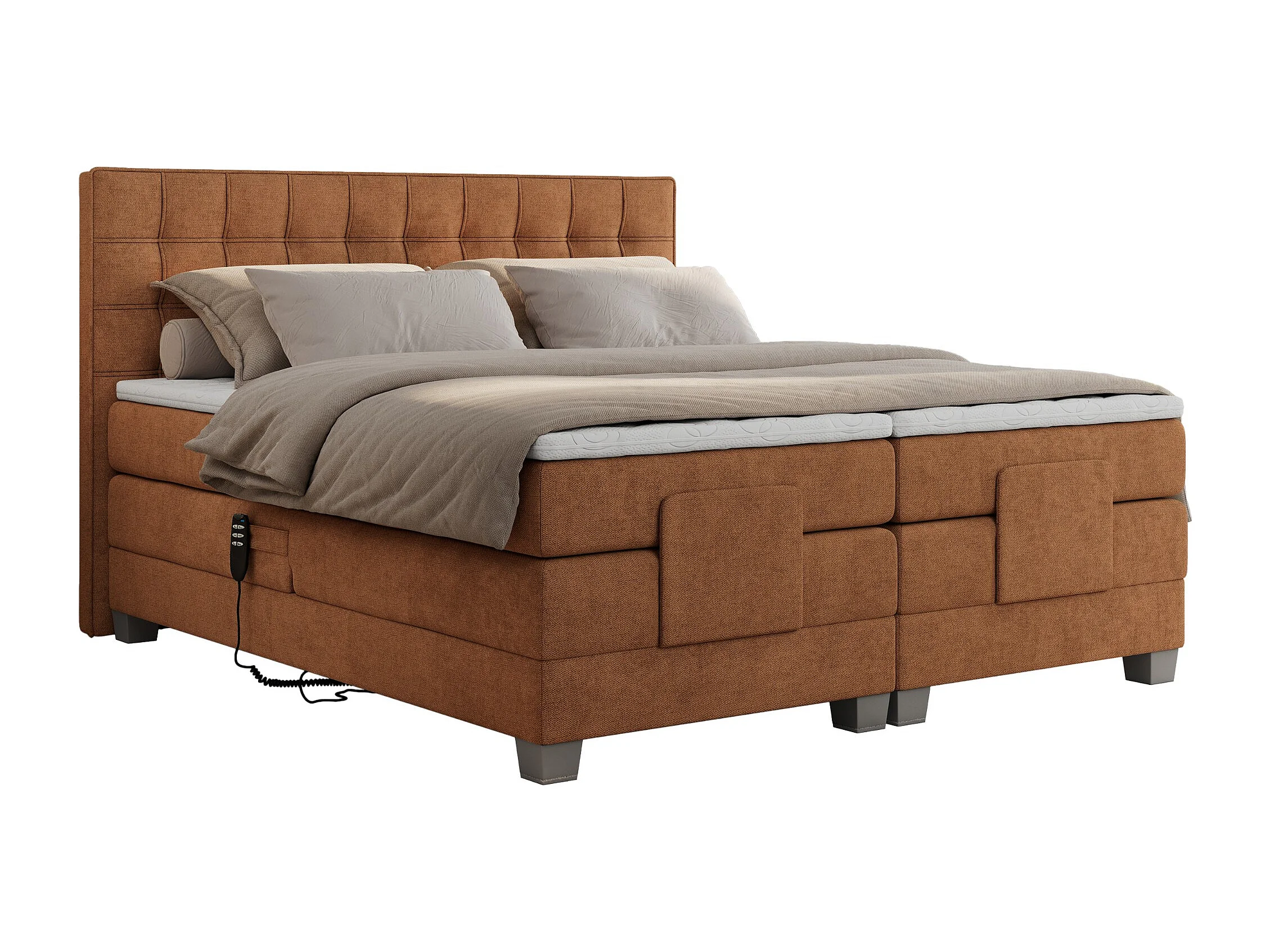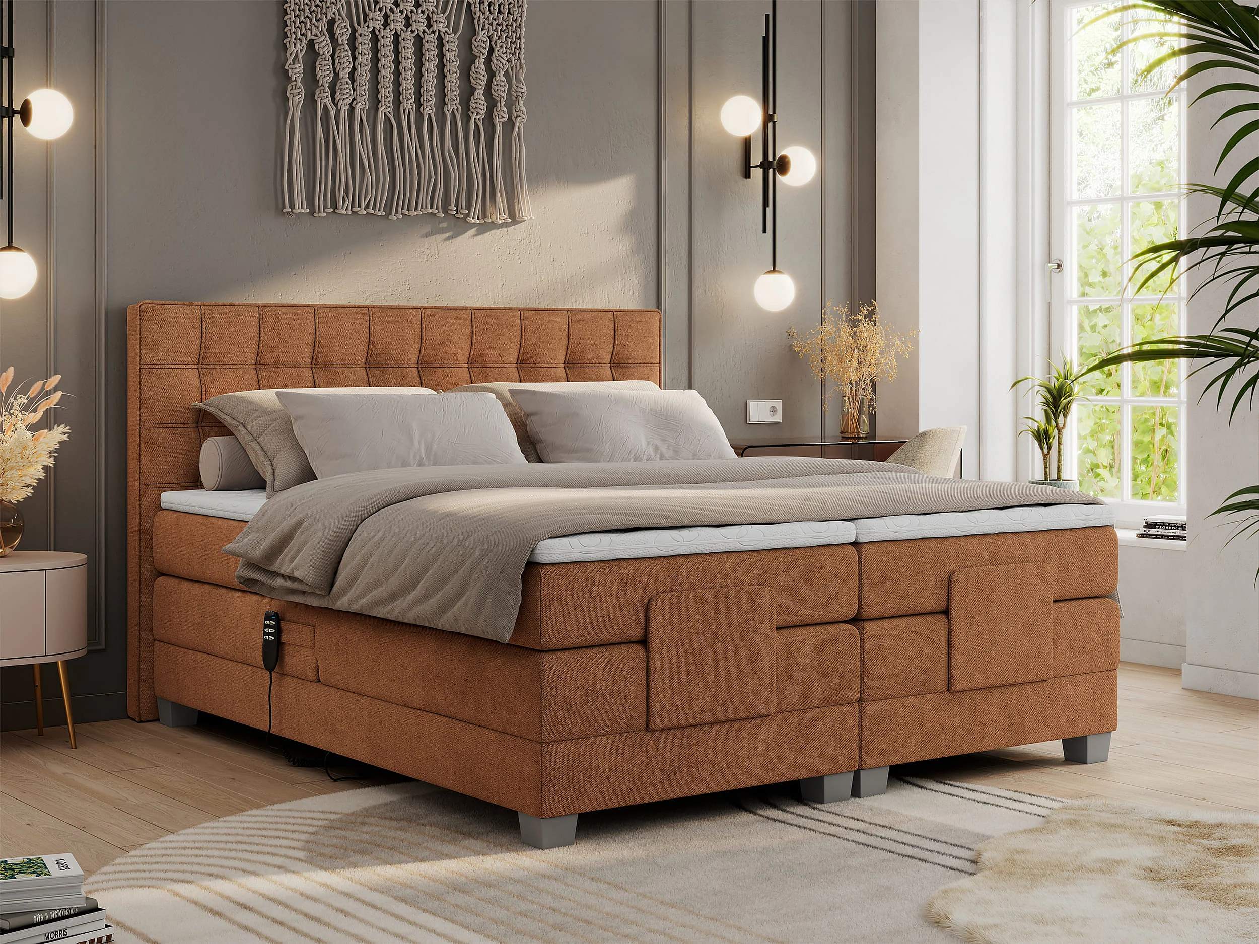 Boxspringbett ELEKTRO mit Multipocket-Matratze, Elektrisch verstellbare, genähtes Kopfteil - 180x200 cm - H3 - Orange Strukture