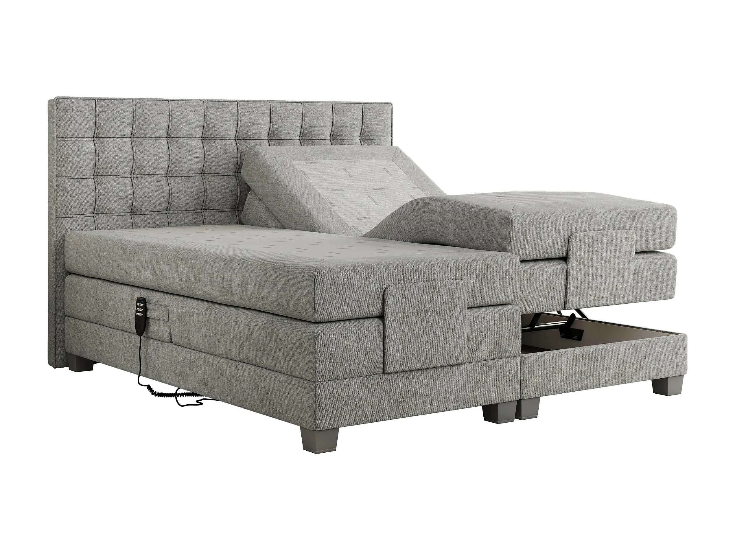 Boxspringbett ELEKTRO mit Multipocket-Matratze, Elektrisch verstellbare, genähtes Kopfteil - 180x200 cm - H4 - Hellgrau Strukture