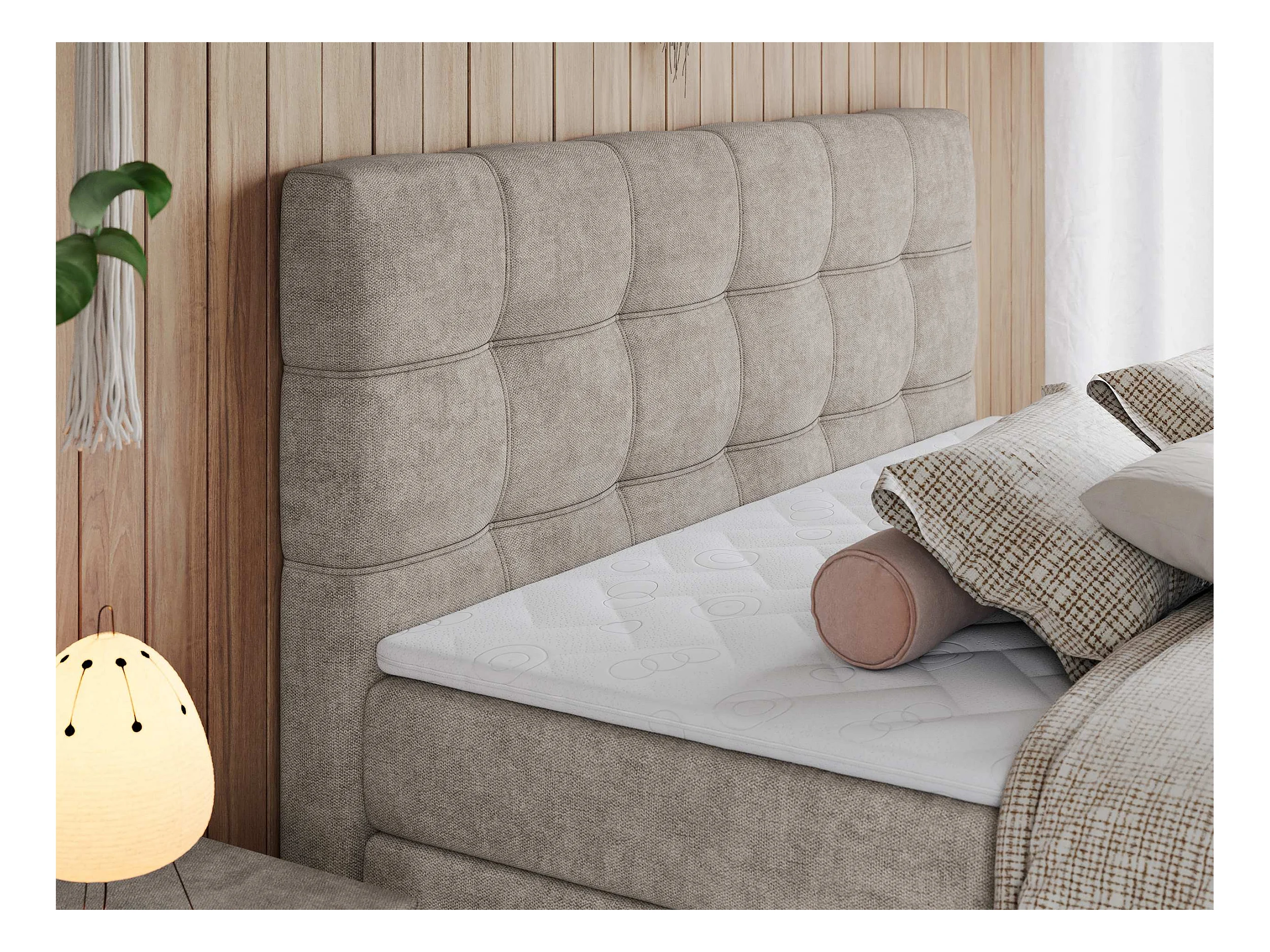 Boxspringbett ERNI KING, gestepptes Kopfteil, zwei Multipocket-Matratze und Topper, mit Stauraum - 120x200 cm - H3 - Beige Strukture