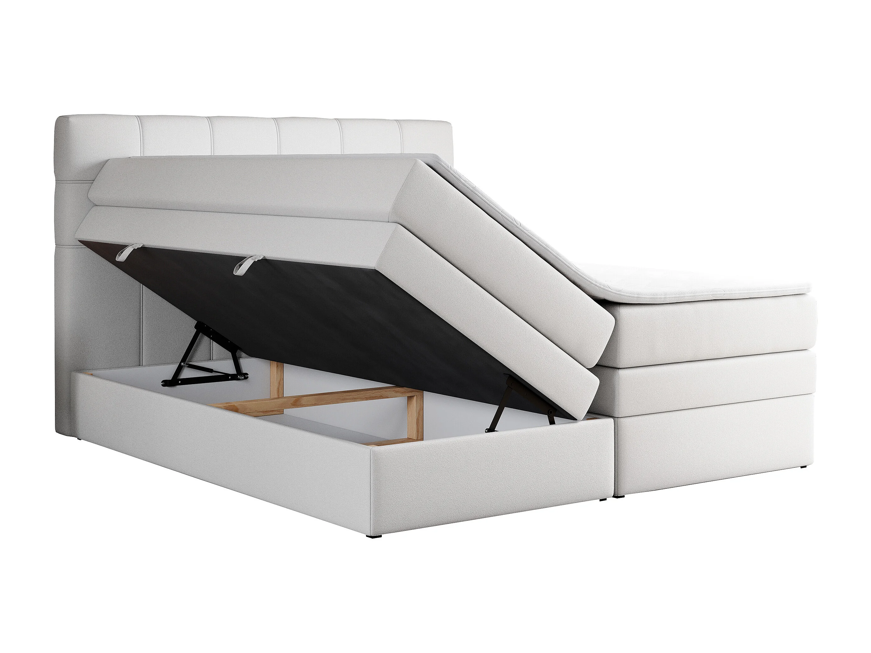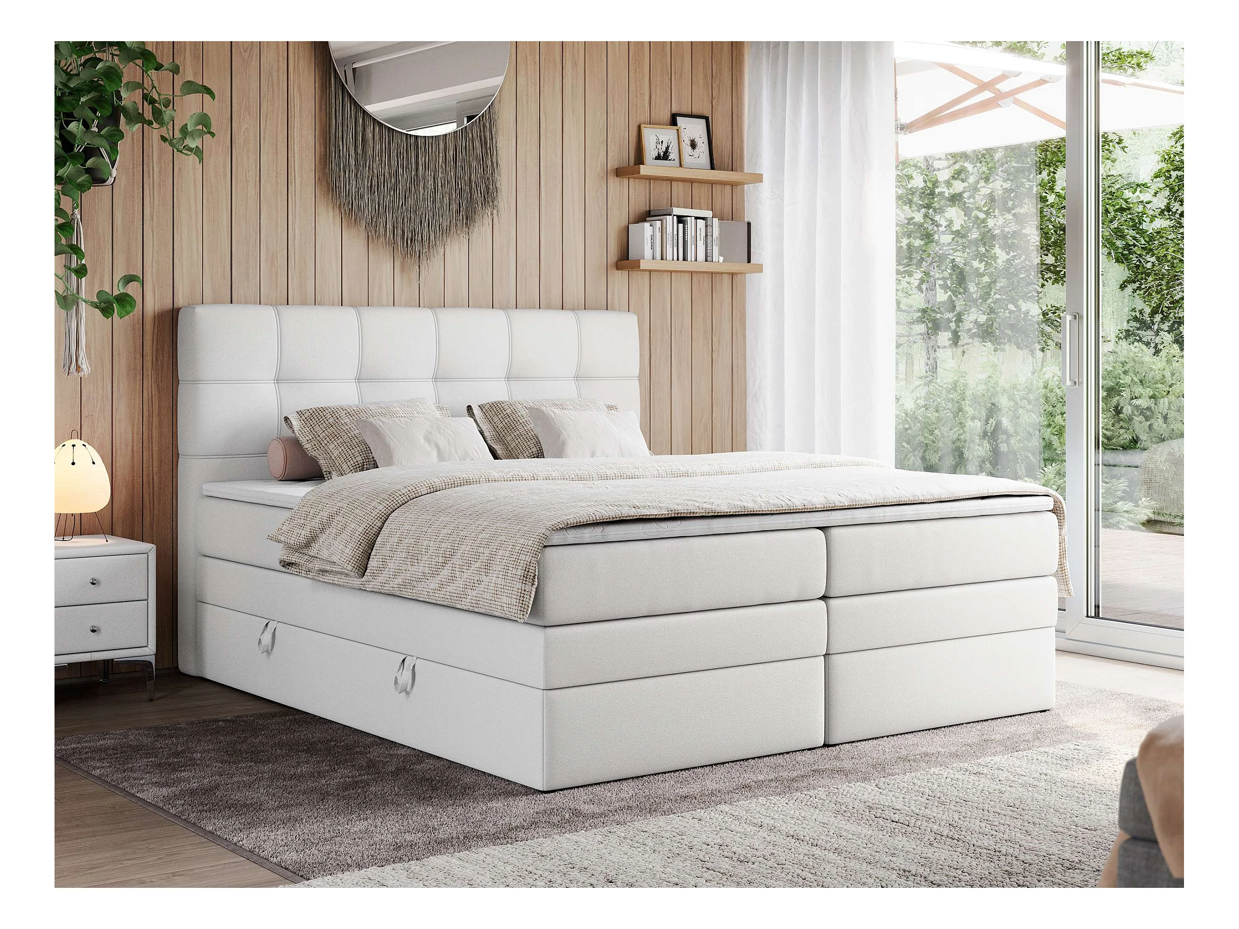 Boxspringbett ERNI KING, gestepptes Kopfteil, zwei Multipocket-Matratze und Topper, mit Stauraum - 120x200 cm - H3 - Weiß Kunstleder