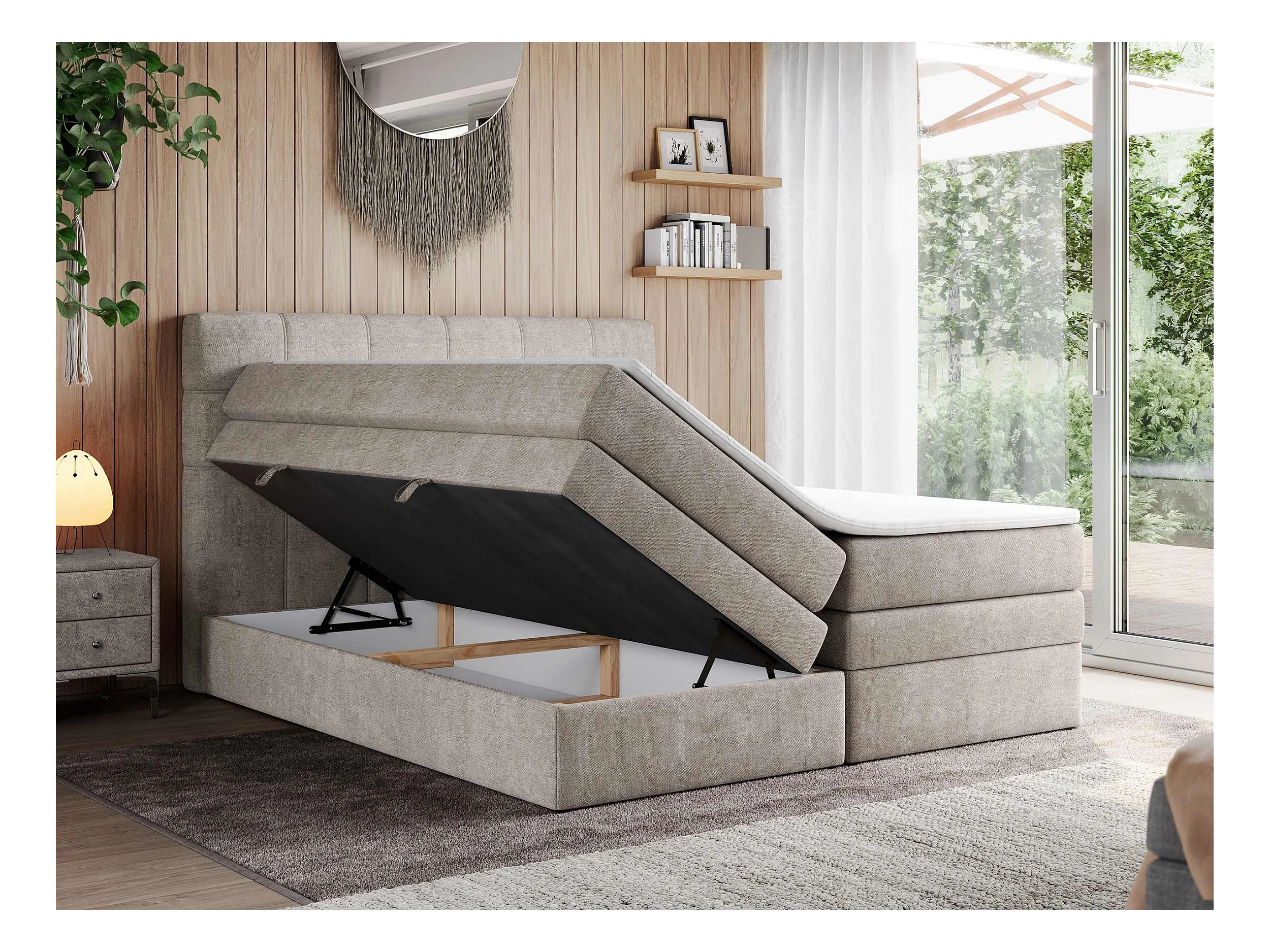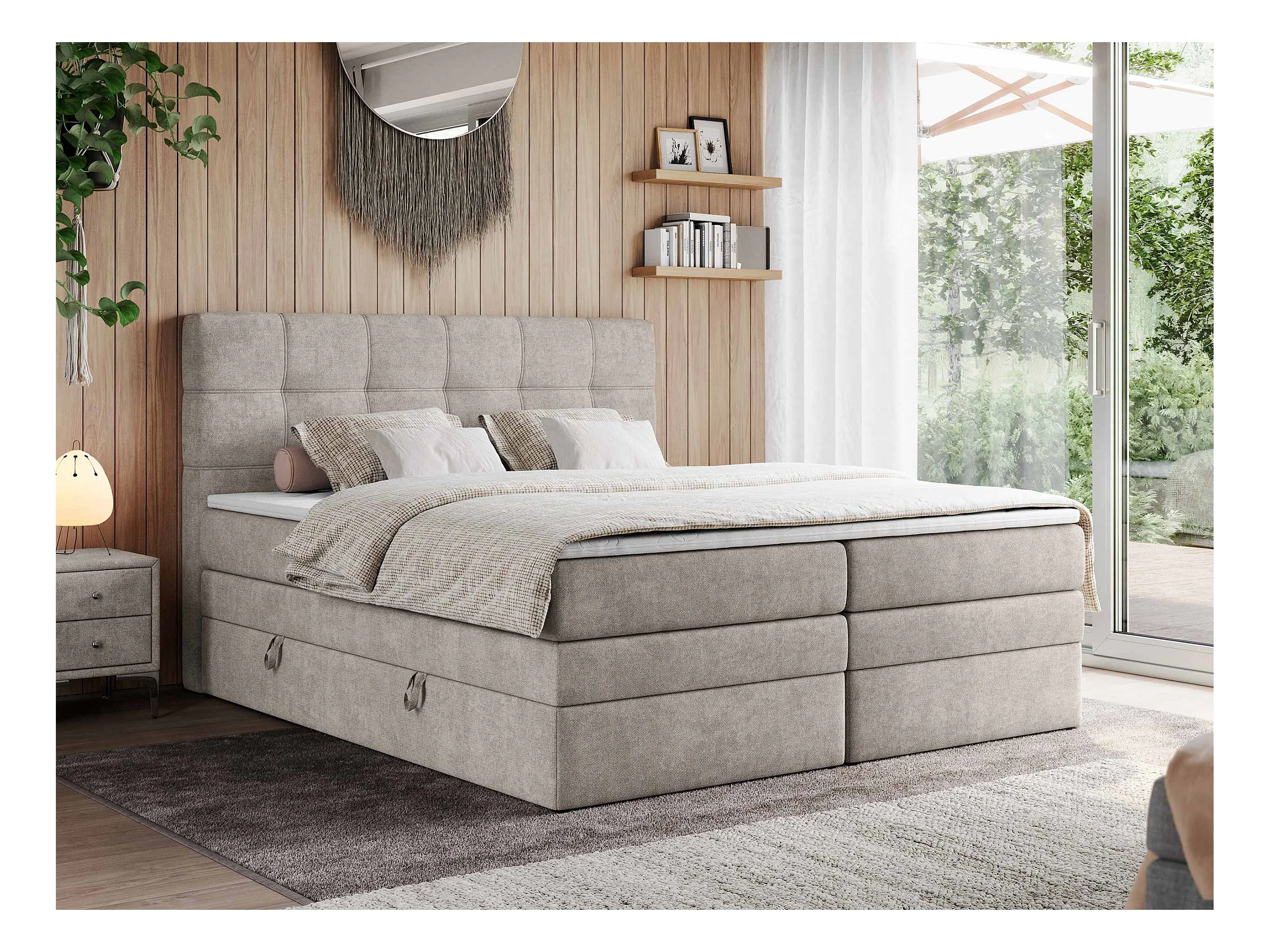 Boxspringbett ERNI KING, gestepptes Kopfteil, zwei Multipocket-Matratze und Topper, mit Stauraum - 140x200 cm - H3 - Beige Strukture