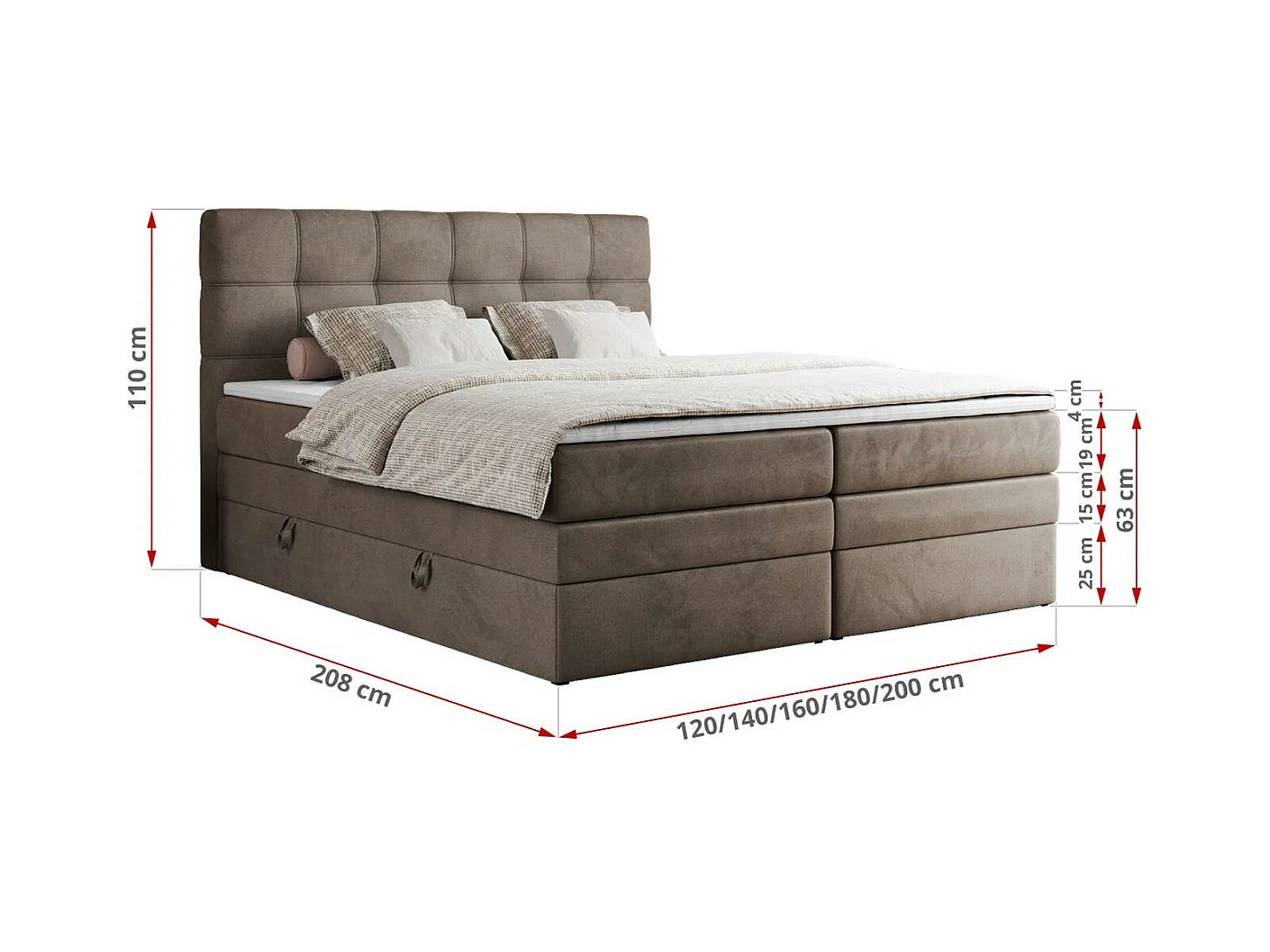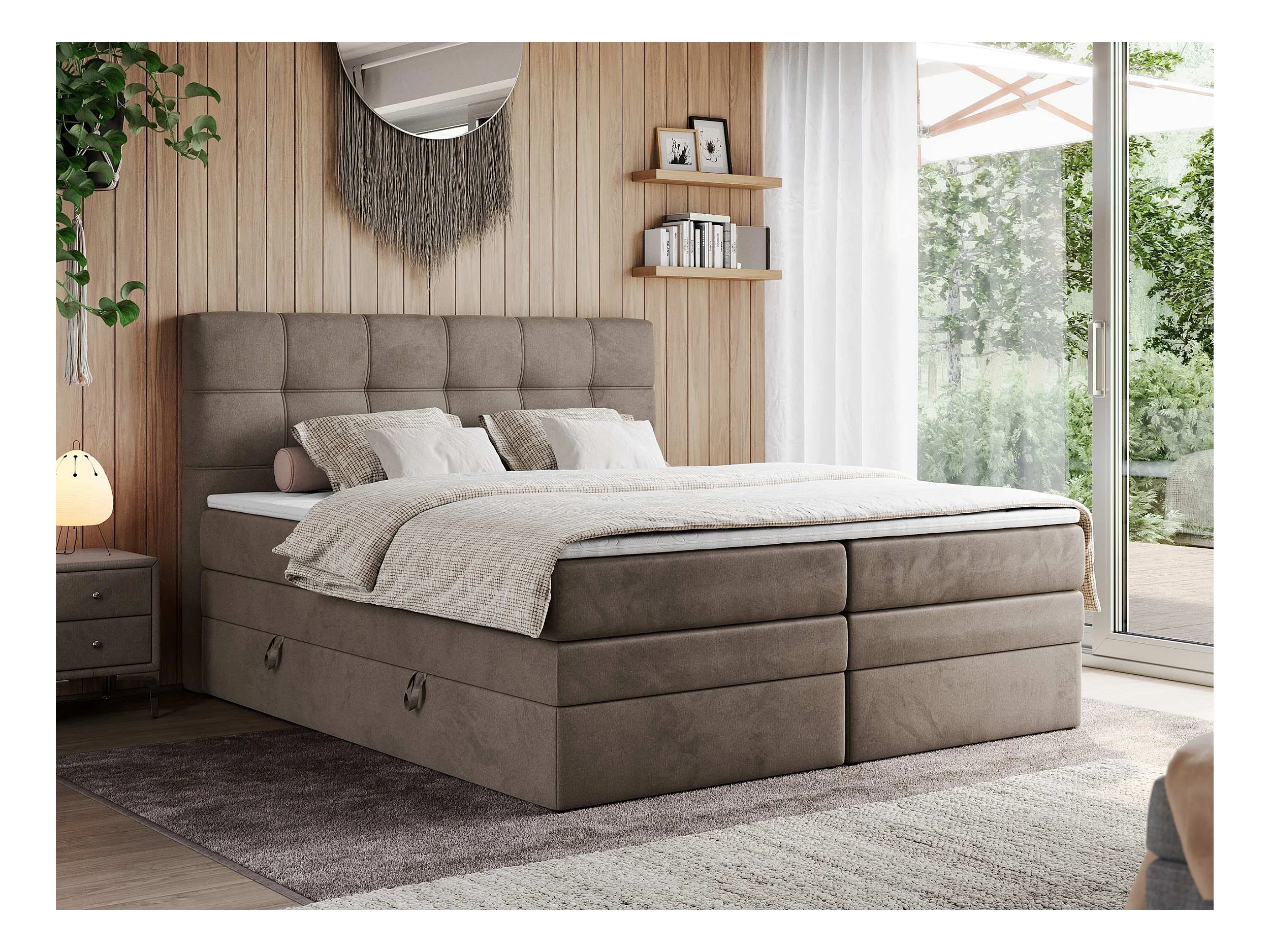 Boxspringbett ERNI KING, gestepptes Kopfteil, zwei Multipocket-Matratze und Topper, mit Stauraum - 160x200 cm - H3 - Braun Velvet