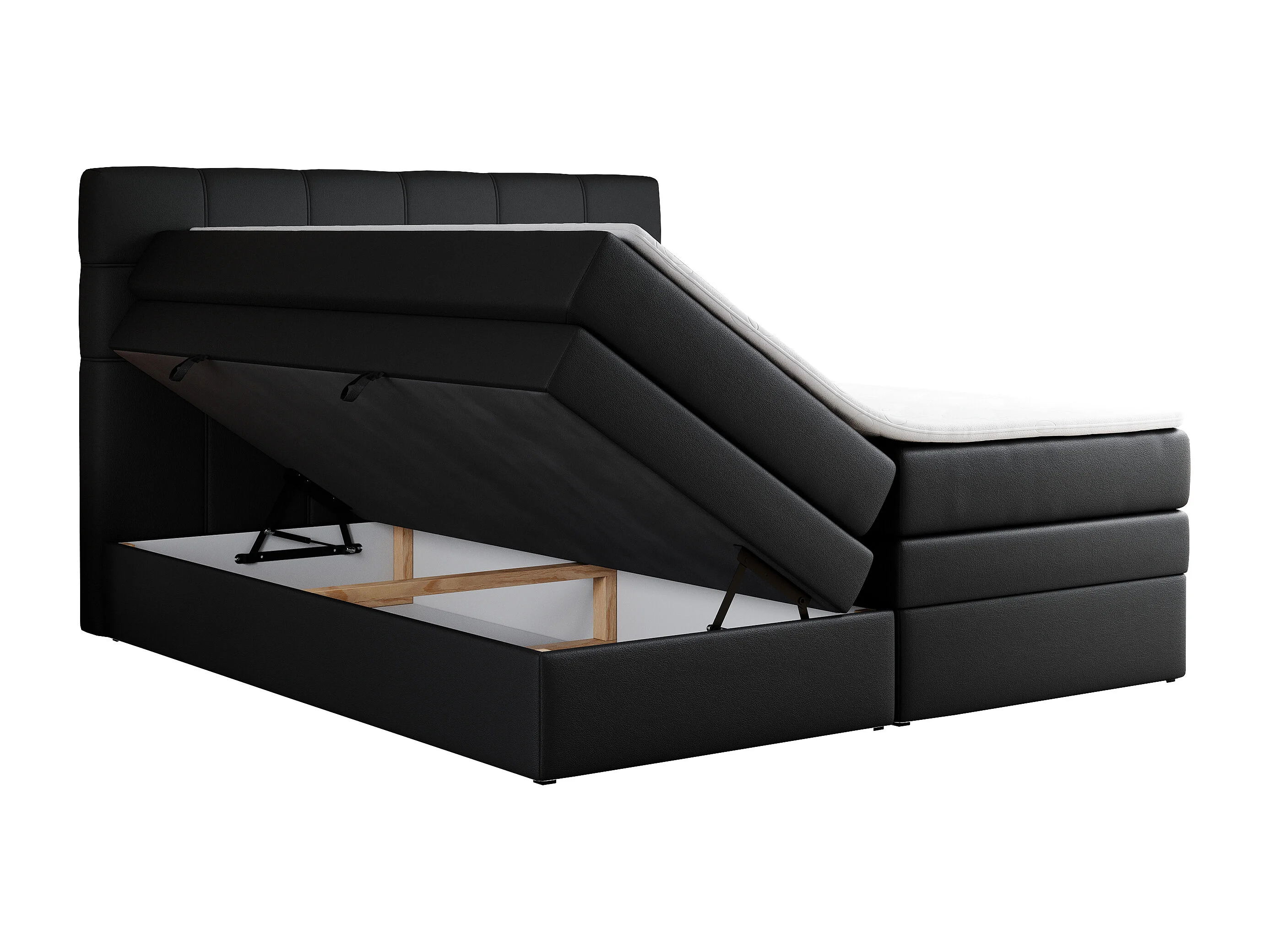 Boxspringbett ERNI KING, gestepptes Kopfteil, zwei Multipocket-Matratze und Topper, mit Stauraum - 200x200 cm - H3 - Schwarz Kunstleder
