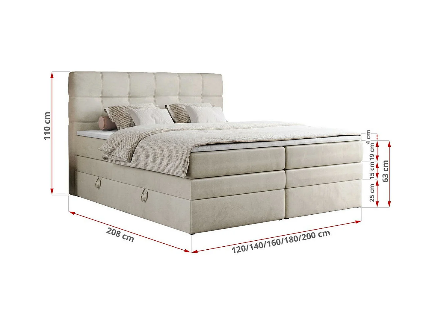 Boxspringbett ERNI KING, gestepptes Kopfteil, zwei Multipocket-Matratze und Topper, mit Stauraum - 200x200 cm - H4 - Beige Velvet