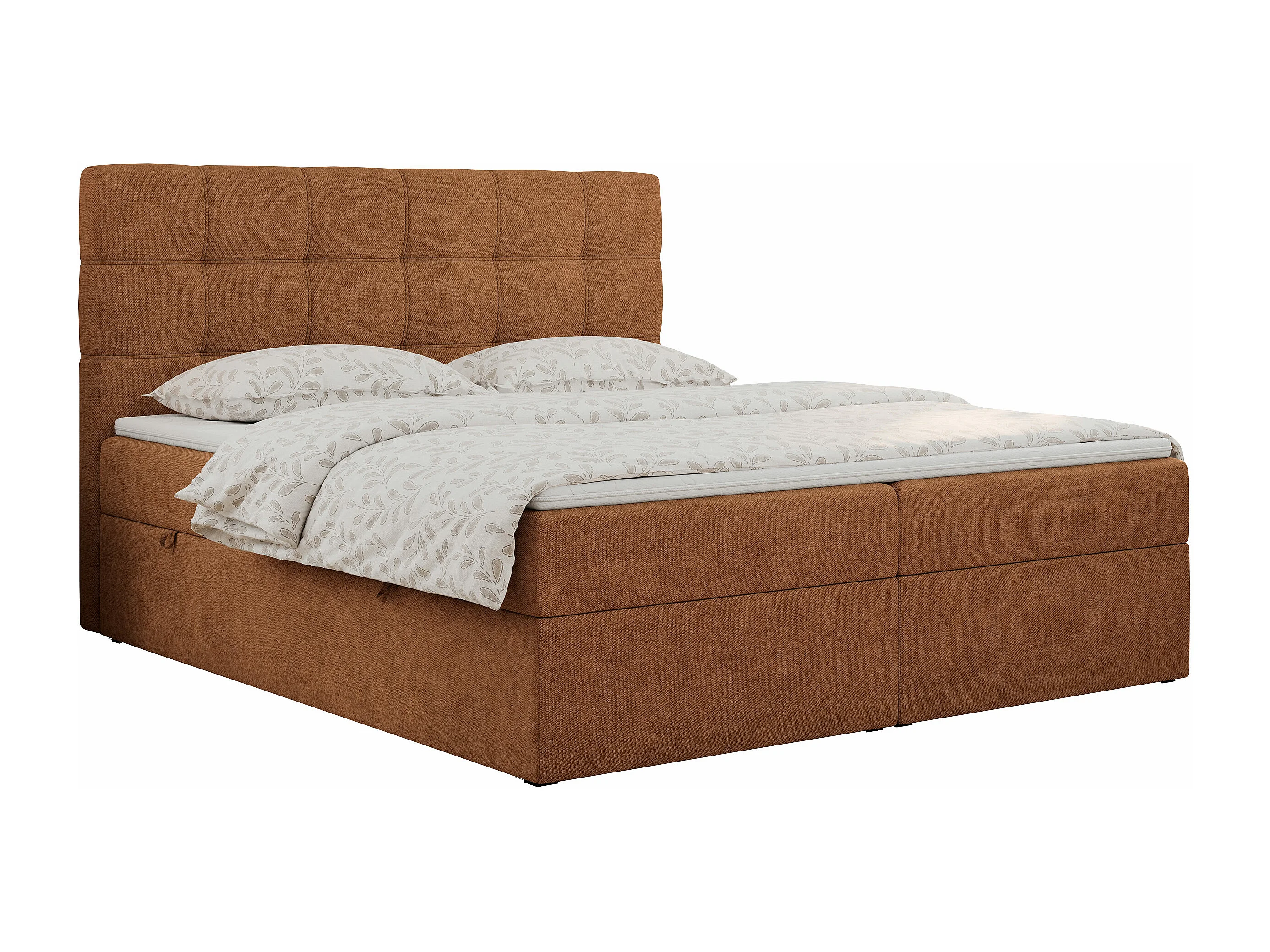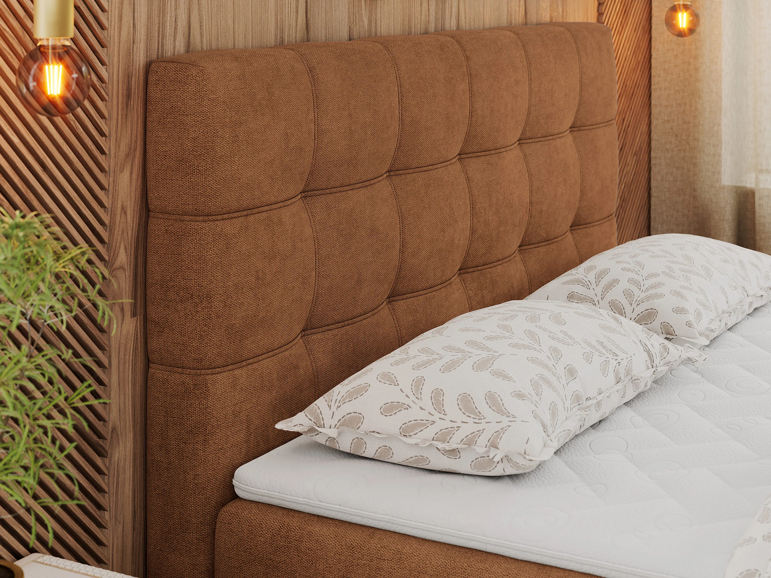 Boxspringbett ERNI - mit gestepptem Kopfteil, Polsterbett, Multipocket-Matratze und Topper, Bettkästen - 120x200 cm - H3 - Orange Stukture