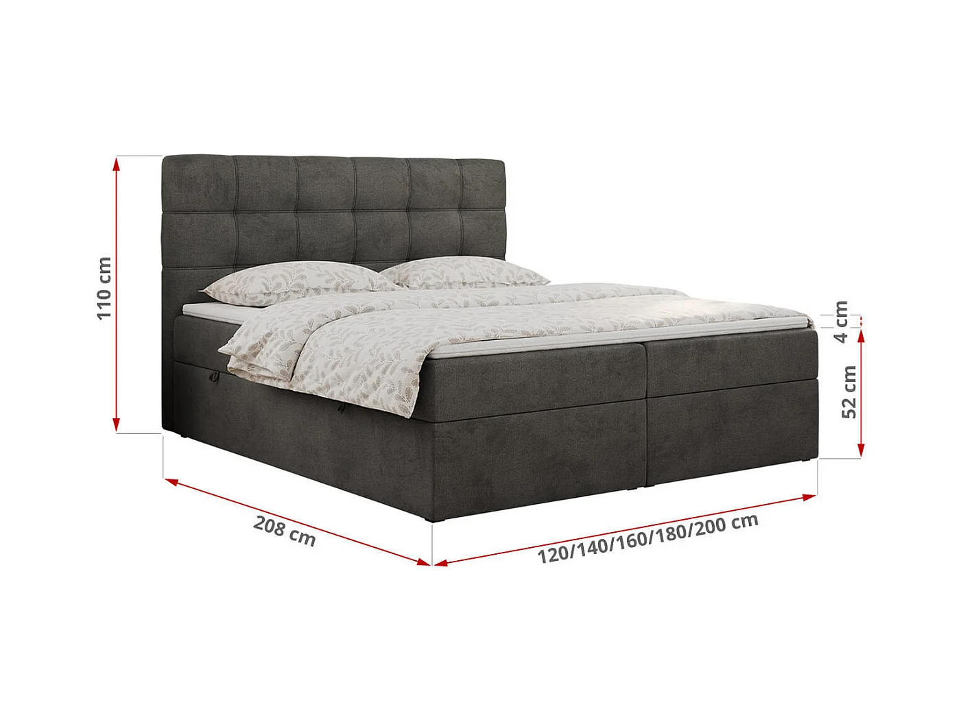 Boxspringbett ERNI - mit gestepptem Kopfteil, Polsterbett, Multipocket-Matratze und Topper, Bettkästen - 120x200 cm - H4 - Dunkelgrau Velvet