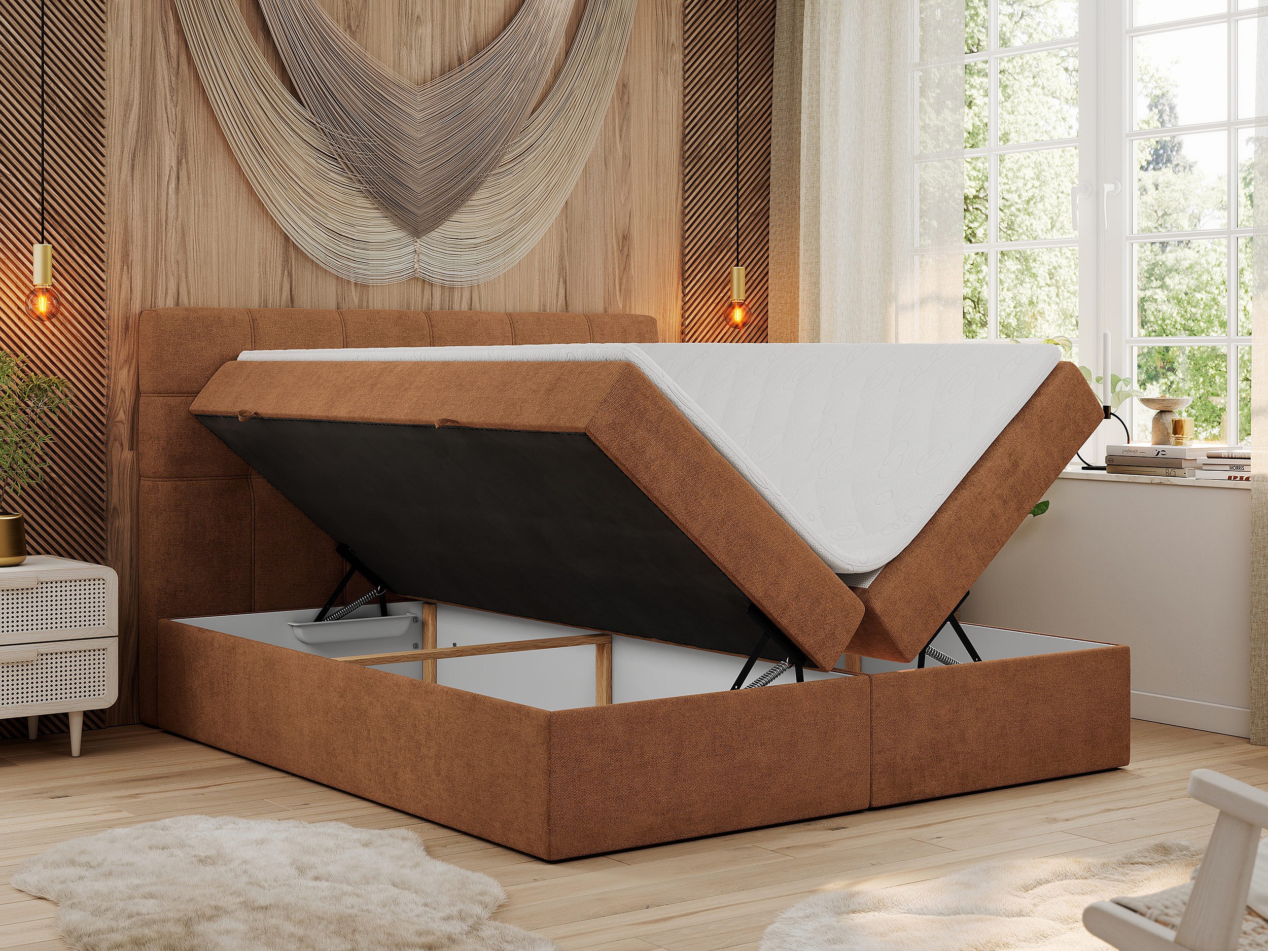 Boxspringbett ERNI - mit gestepptem Kopfteil, Polsterbett, Multipocket-Matratze und Topper, Bettkästen - 160x200 cm - H3 - Orange Stukture